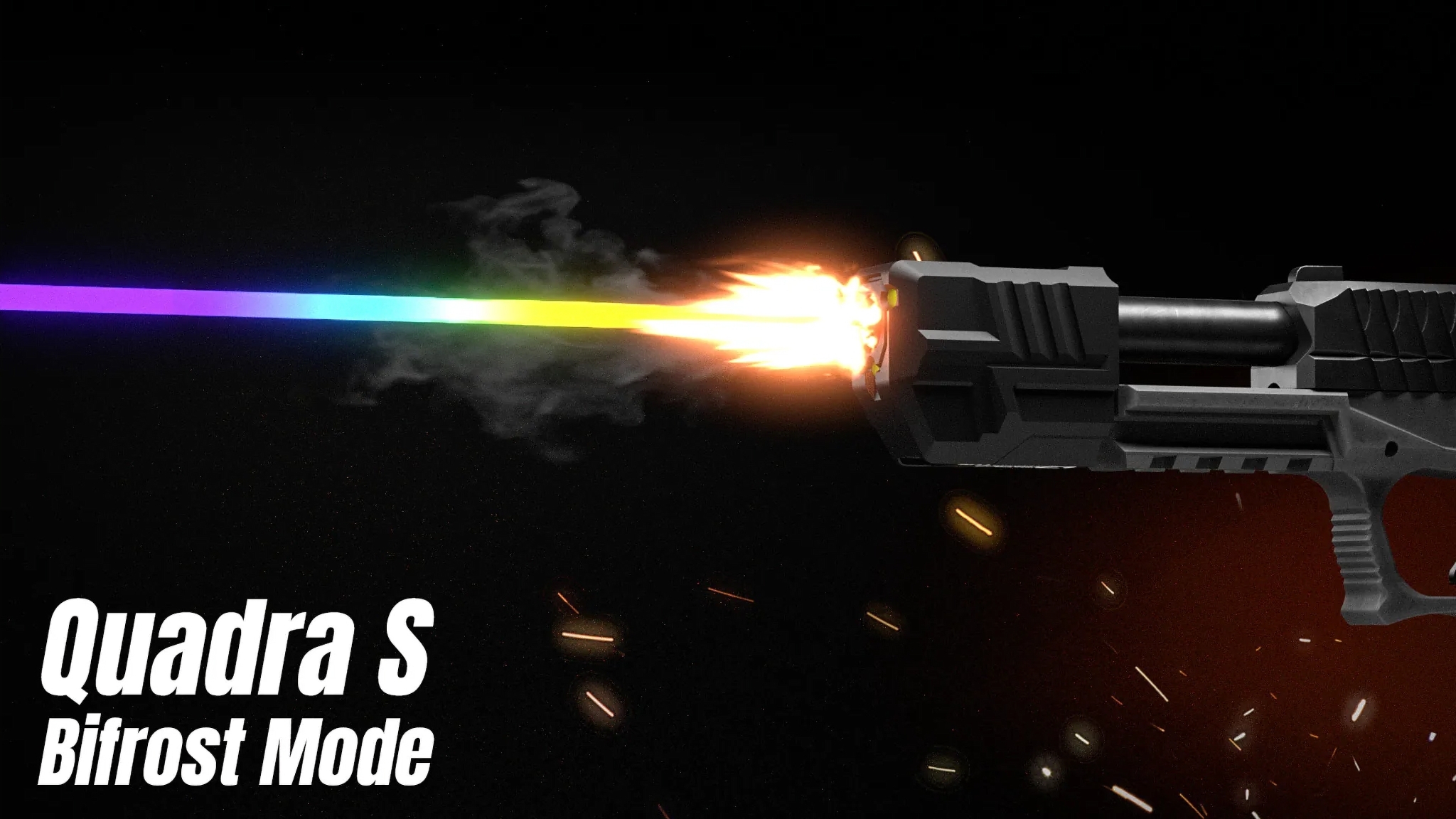 Demonstration of tracer illumination (non-RGB QUADRA model) and realistic muzzle flash effect during shooting.