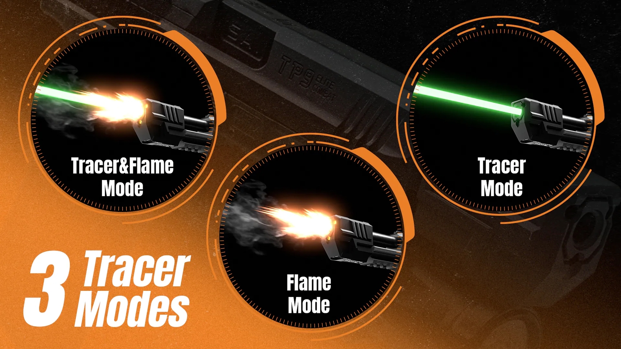 Choose between tracer BB illumination, muzzle flash only, or a combination of both.