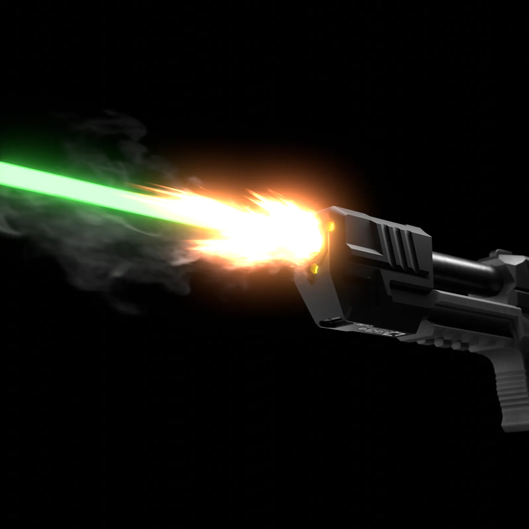Demonstration of tracer BB illumination and realistic muzzle flash effect during pistol shooting.