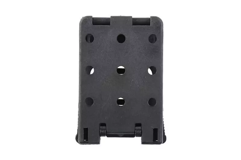 Wykonany z wytrzymałego polimeru adapter umożliwiający zamocowanie na pasie taktycznym polimerowych ładownic Primal Gear z montażem systemu MOLLE. Wysokość montażu jest regulowana.