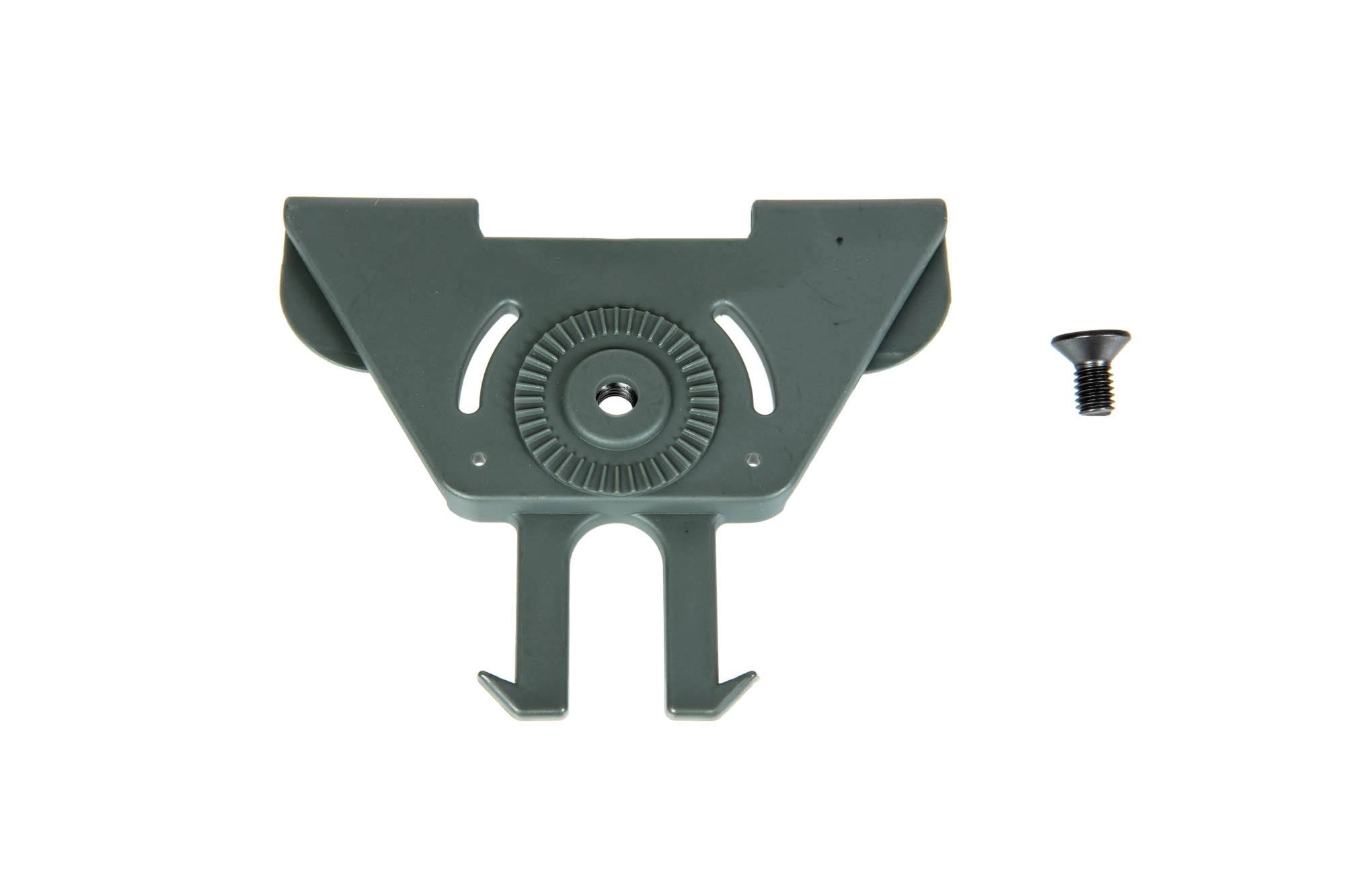 Wykonany z wytrzymałego tworzywa sztucznego adapter pozwalający na montaż kabury lub kompozytowej ładownicy na oporządzeniu zgodnym ze standardem MOLLE. Specjalna konstrukcja adaptera pozwala na dowolne obrócenie kabury.