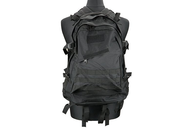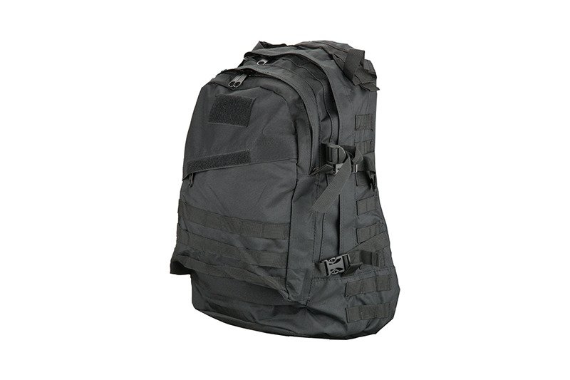 Practical backpack for equipment made of 600D Nylon. It is a classic stitched binding Molle around the perimeter. When motion may insure his position detachable chest strap and an adjustable waist belt. Internal back pocket is intended for hydration pouch and tubing then passes through the hole in the top of the pack. The side straps with Fastex buckle allow attachment of other accessories. The shoulder straps are padded and adjustable. Backpack is ideal for outdoor activities and airsoft.