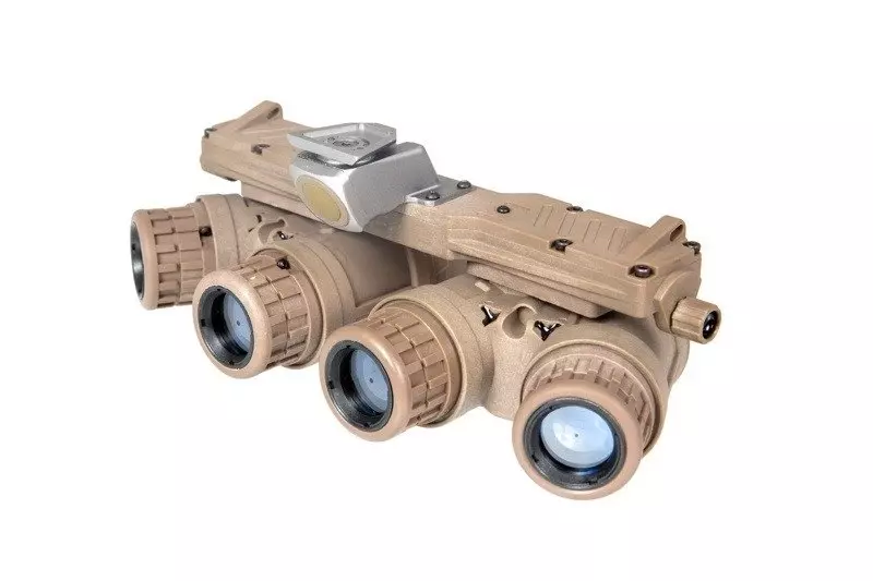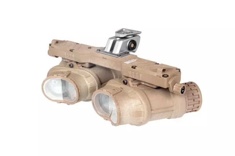 Atrapa znanego, amerykańskiego urządzenia noktowizyjnego GPNVG18-BNVS. Atrapę wykonano z wytrzymałego tworzywa sztucznego. Montaż pozwala na przymocowanie zestawu do hełmów wyposażonych w specjalne zaczepy. W zestawie znajduje się funkcjonalna puszka na baterie z kablem. Puszkę przymocować można na hełmie przy pomocy taśmy rzepowej.