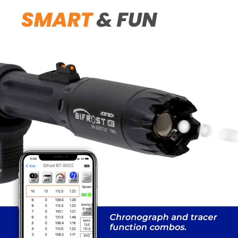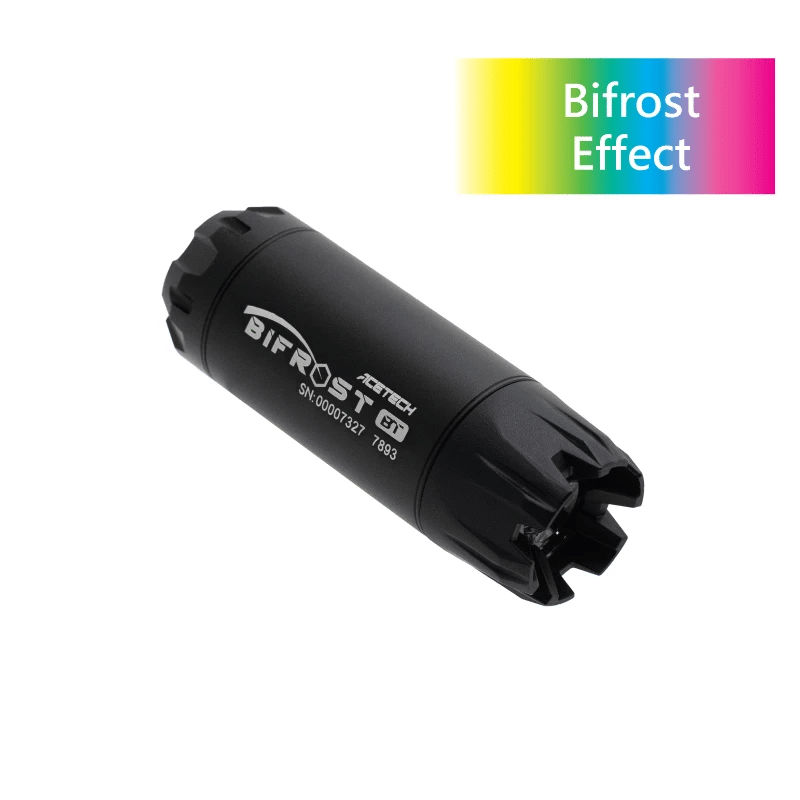 Najciekawszą cechą Bifrosta jest symulacja błysku z lufy, szczególnie podczas strzelania z efektem wielokolorowym. Wybuch najlepiej widać przy użyciu repliki gazowej, gdyż rozświetlane są pozostałości gazu. Efekt płomienia zależy od objętości gazu lub mgły wokół wylotu lufy, im większa objętość, tym większy efekt. Na końcu tłumika znajdują się 3 diody LED, które po strzale oświetlają lecącą kulę oraz gaz (powietrze) wokół lufy. Efekt jest widoczny nawet przy użyciu replik elektrycznej, choć nieco słabszy. Dodatkowo dzięki Bifrostowi możesz wybrać jaki kolor i w jakim trybie będzie on używany.