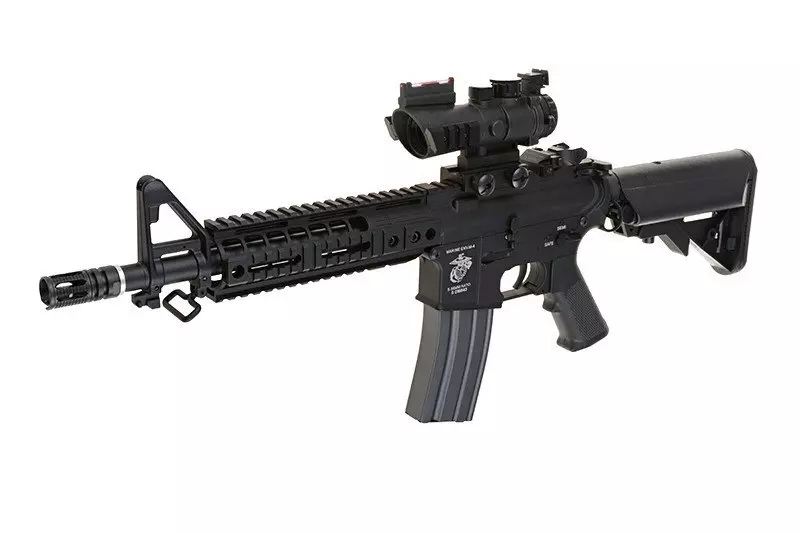 Kolimator wyposażony jest w montaż na szynę RIS 22mm. Dzięki czemu mamy możliwość instalacji na praktycznie każdym modelu repliki wyposażonym w taką szynę. Dwie boczne szyny RIS umożliwiają montaż dodatkowych akcesoriów. W zestawie znajduje się dodatkowy montaż na szynę 11mm.