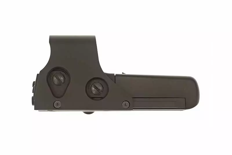 Solidny kolimator z obudową wykonaną z metalu, posiadający płynną regulację położenia punktu celowniczego (za pomocą dwóch pokręteł), oraz szeroki zakres regulacji jego jasności. Zasilanie stanowią dwie baterie typu AA, zdejmowana metalowa osłona pozwala na montaż klapek typu flup-up pozwalających na ochronę szkieł.