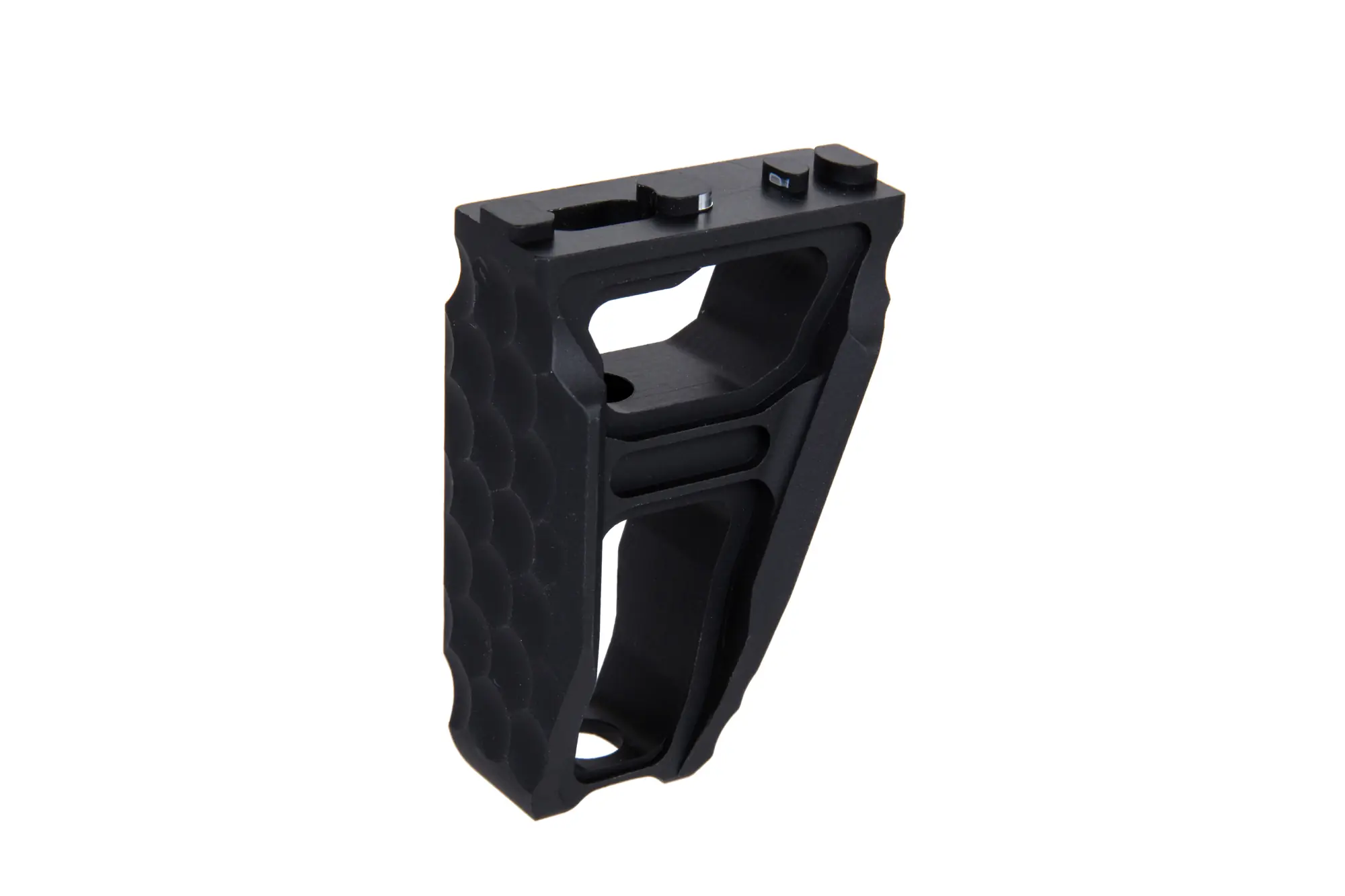 M-LOK. Dzięki swojej konstrukcji i antypoślizgowej fakturze z obu stron, może służyć jako powiększony Hand Stop lub chwyt przedni. Dodatkowo dzięki szkieletowej konstrukcji jest znacznie lżejszy.