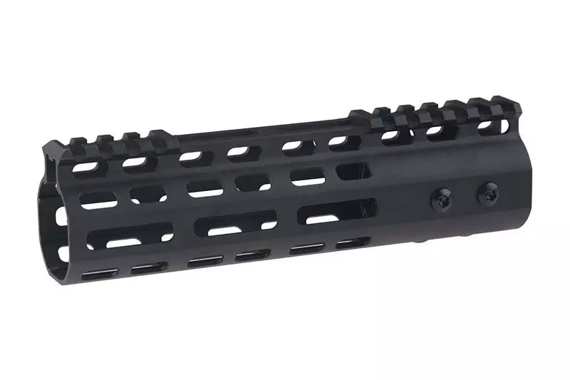 Wykonany w całości z metalu zespół frontowy z montażem typu MLOK. Jego długość wynosi 180mm. Gotowy do montażu na replikach typu M4/M16. Sloty umożliwiają wyposażenie karabinka w szereg akcesoriów dodatkowych.