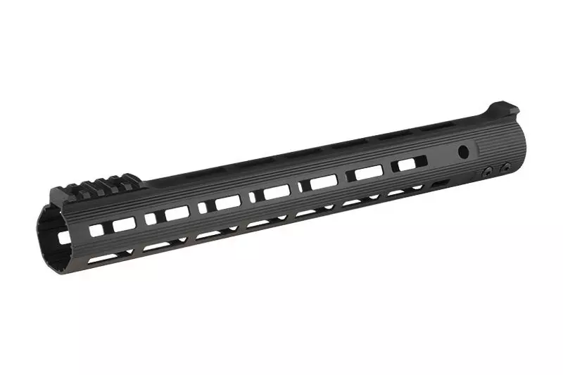 Wykonany w całości z metalu zespół frontowy z montażem typu MLOK oraz krótką grzbietową szyną RIS. Jego długość wynosi 382mm. Gotowy do montażu na replikach typu M4/M16. Sloty umożliwiają wyposażenie karabinka w szereg akcesoriów dodatkowych.