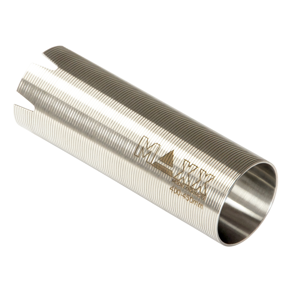 CNC Hardened Stainless Steel Cylinder – TYPE B (for 400mm – 450mm barrel length) is precisely machined to ensure consistent air compression and improve durability for most standard airsoft AEG gearboxes.