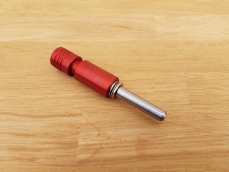 Custom spring guide for gearboxes od M249 airsoft guns. It is made at CNC machining center out of EN AW 7075 aluminium. Spring guide is equipped wit axial bearing which avoids spring distorting.