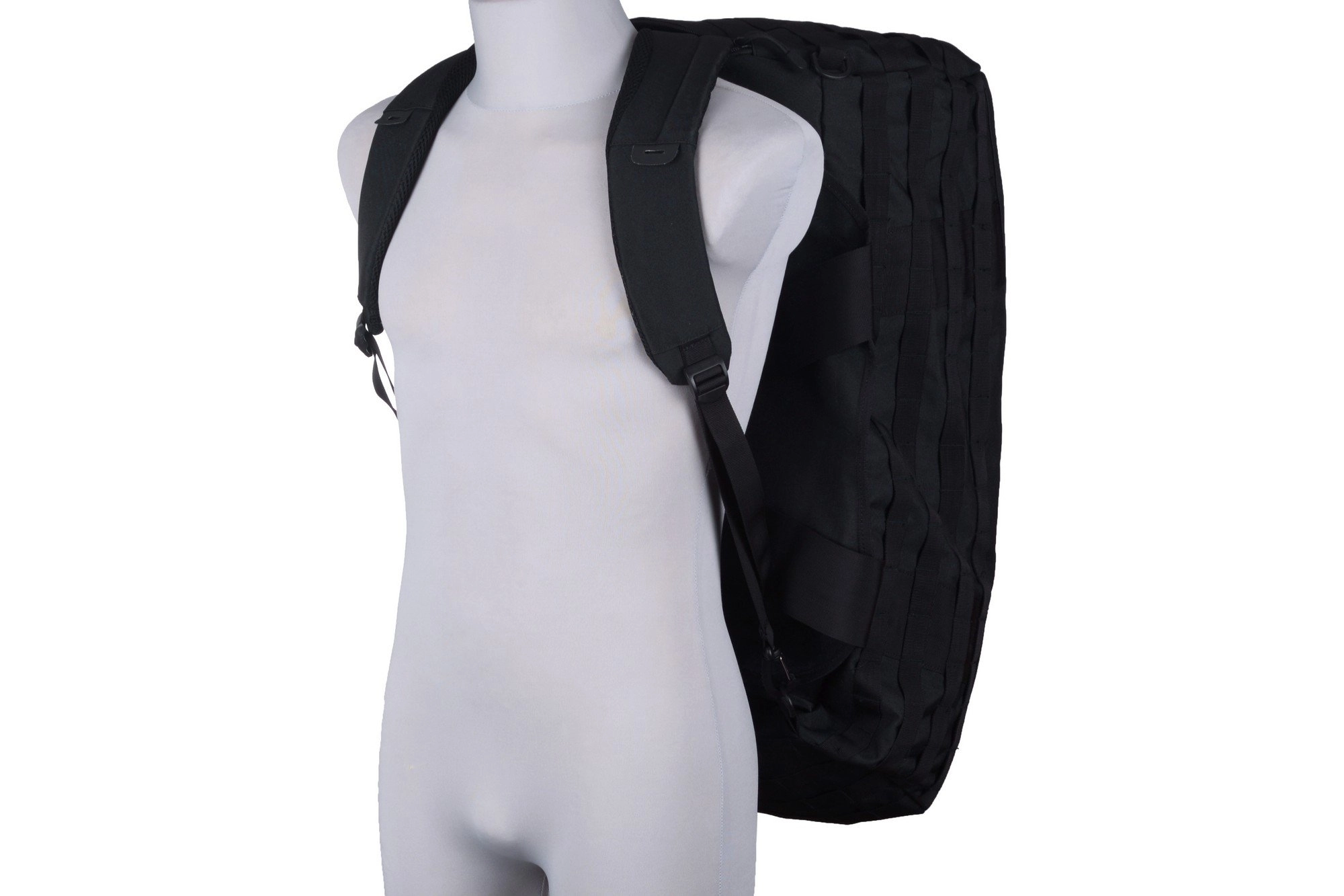 Wykonana z wytrzymałego nylonu duża, klasyczna torba na wyposażenie. Torba posiada dużą, główną komorę zamykaną na zamek błyskawiczny. W środku znajduje się także płaska, siatkowa kieszeń. Na bokach torby znajdują się dodatkowe płaskie kieszenie, zamykane na zamek, obszyte palsami MOLLE do których doczepić można dodatkowe ładownice.