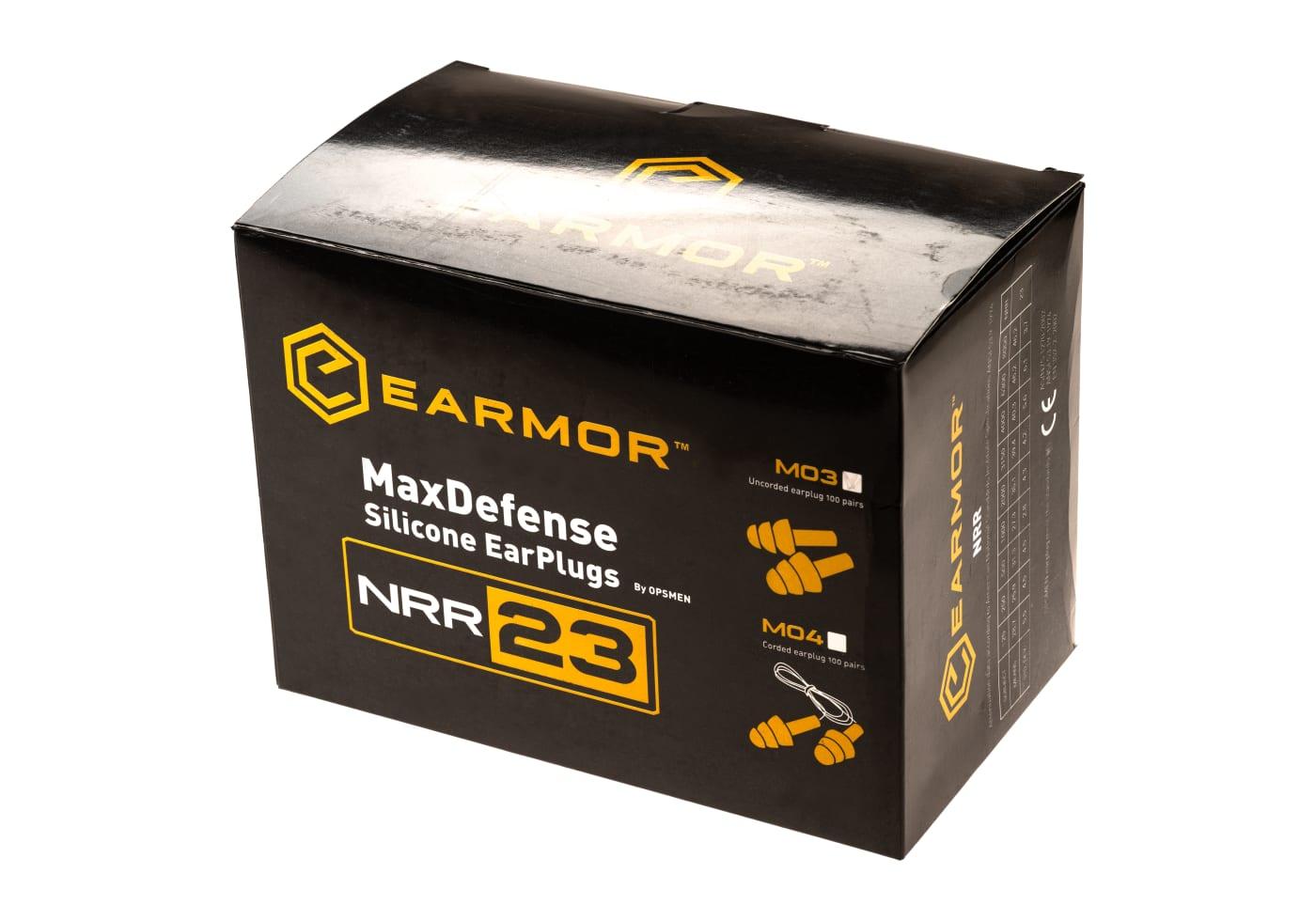Earmor MaxDefense Silicone Ear Plugs NRR23 100 Pairs Box Yellow