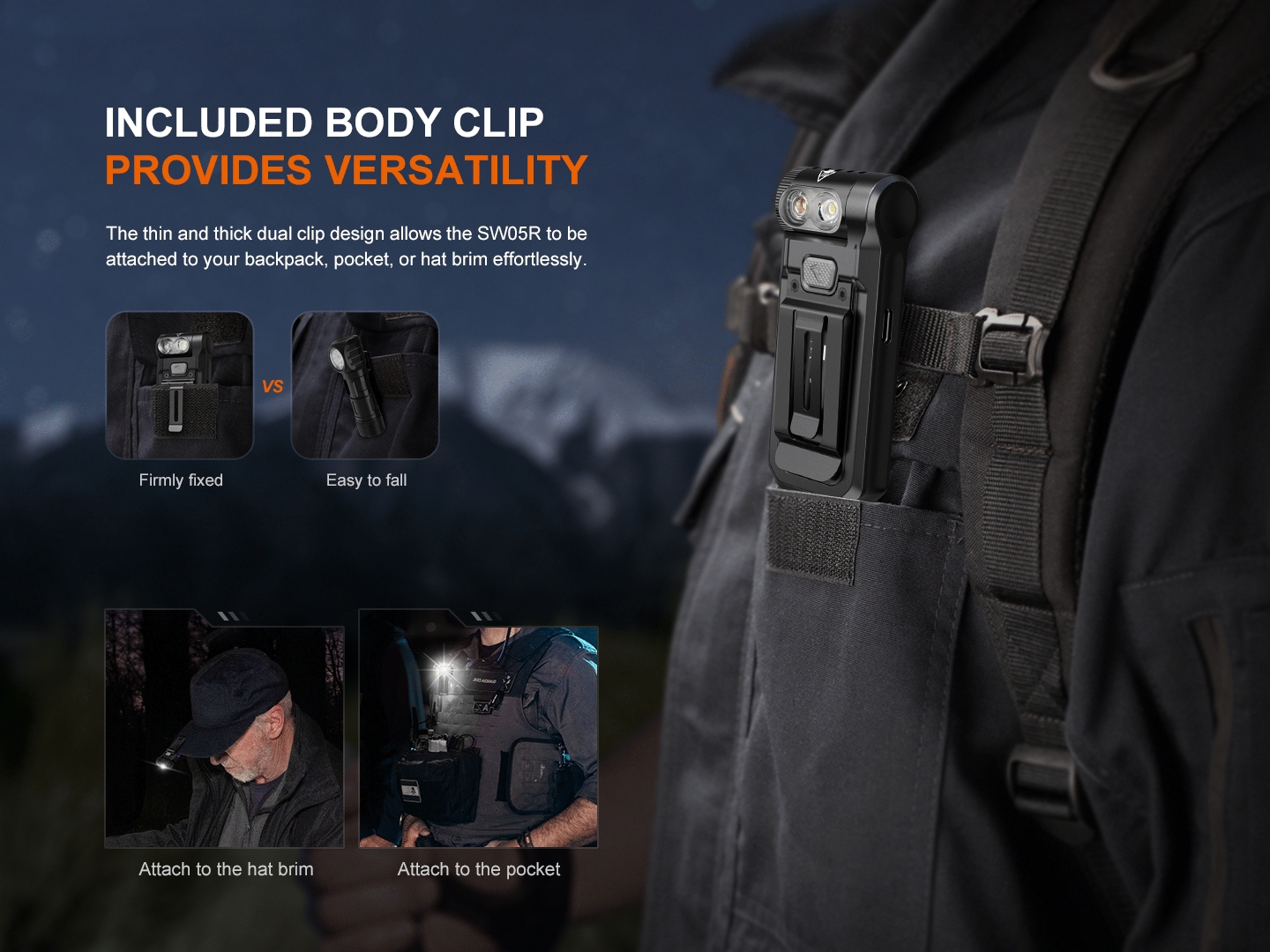 Magnetic base and clip: Easily attaches to clothing, gear, or metal surfaces.