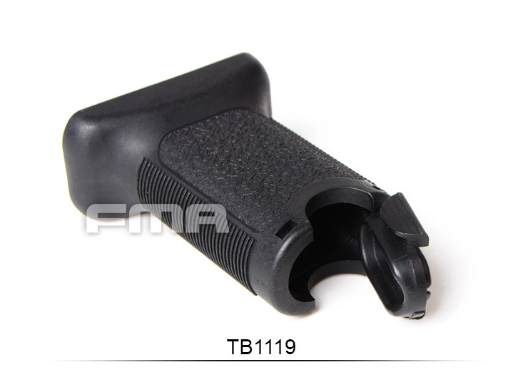 This tactical grip by FMA is designed to attach to Keymod handguards. The grip is made from lightweight and durable polymer (PA66) with non-slip grooving on the sides for a comfortable and secure grip. It is ergonomically designed to provide excellent control over the weapon while maintaining a low weight and high durability.Its slim and hollow design is ideal for use with lightweight weapons and offers superior ergonomics even during extended use. The grip is also non-conductive, enhancing safety in various conditions.At the bottom of the grip, there is a cap that allows for the storage of small items such as a CR123A battery for a red dot sight.