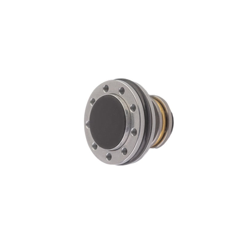 Cicha głowica tłoka wykonana jest z duraluminium EN AW 6012 T6 na centrum obróbczym CNC. Z przodu wywierconych jest dziewięć otworów. Strumień powietrza przepływa przez te otwory podczas sprężania rozszerzając o-ring, co zapewnia lepsze uszczelnienie przestrzeni między głowicą tłoka a cylindrem.