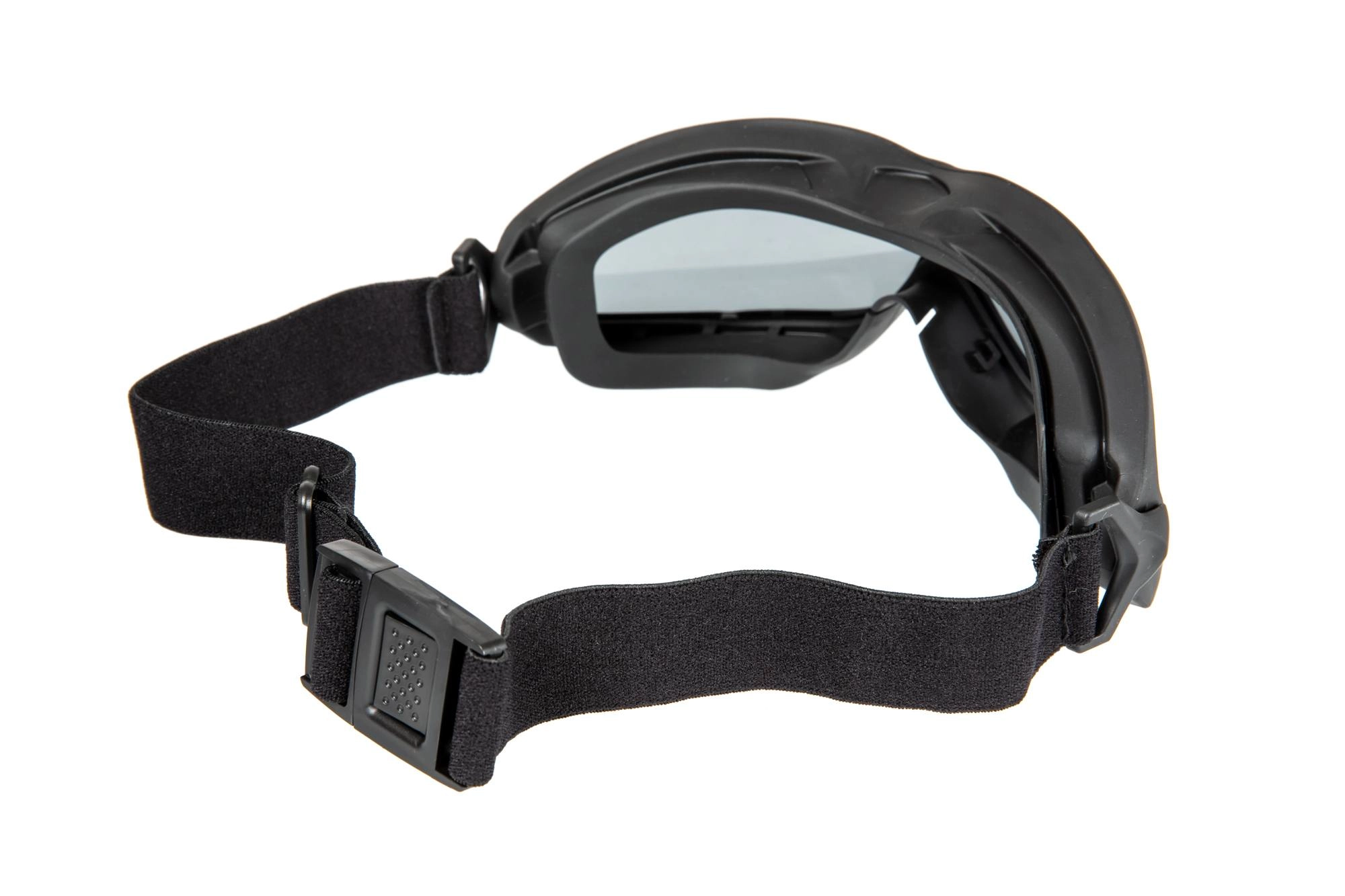 Wykonane z wytrzymałego tworzywa sztucznego oraz gumy niskoprofilowe gogle taktyczne. Zastosowanie podwójnej szybki oraz gumowego kołnierza pozytywnie wpływa na wentylację.