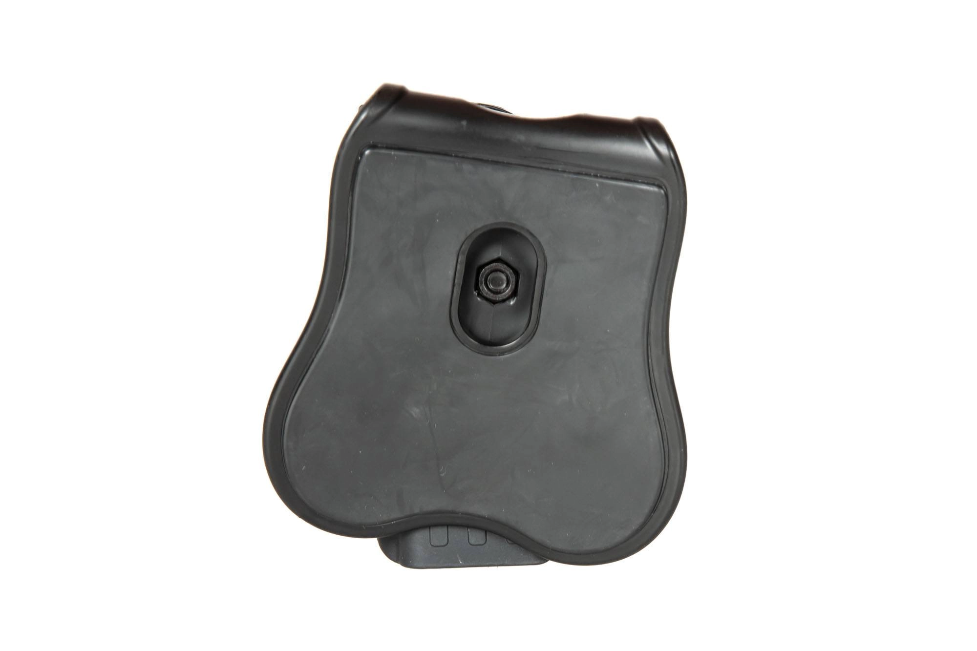 Lekka i wytrzymała polimerowa kabura dedykowana do replik pistoletów typu Glock. Kabura została wyposażona w regulowaną płetwę do mocowania na pasie o szerokości max 60mm.