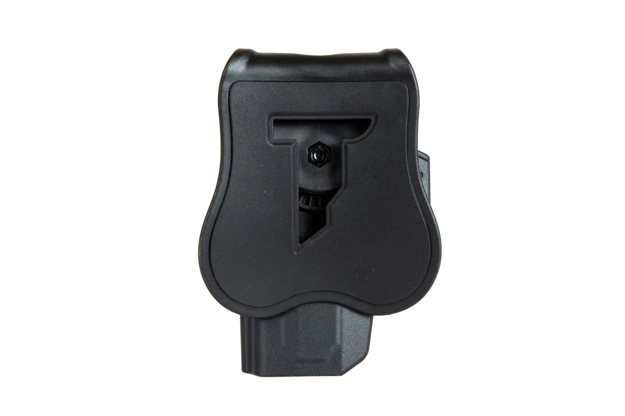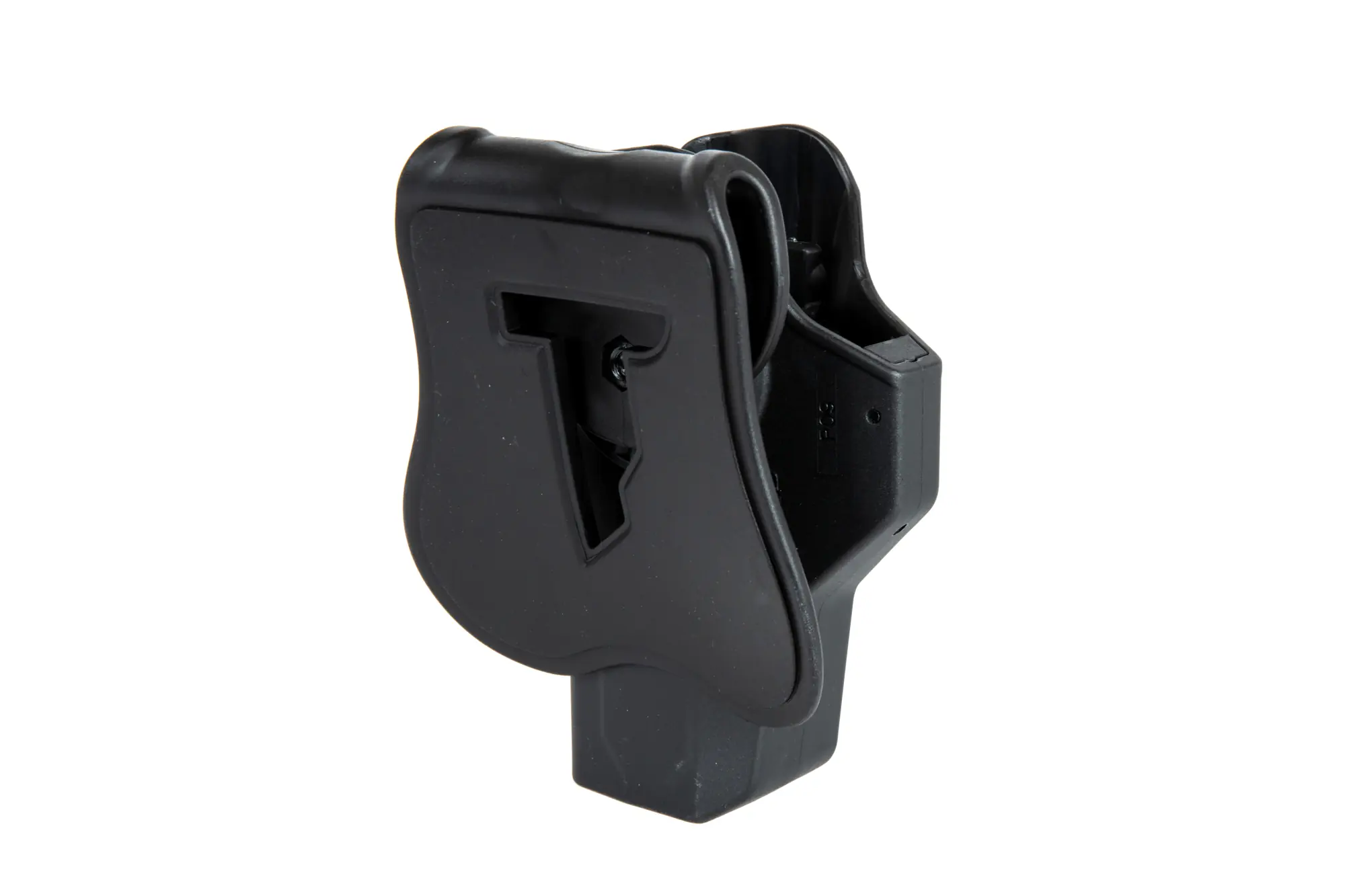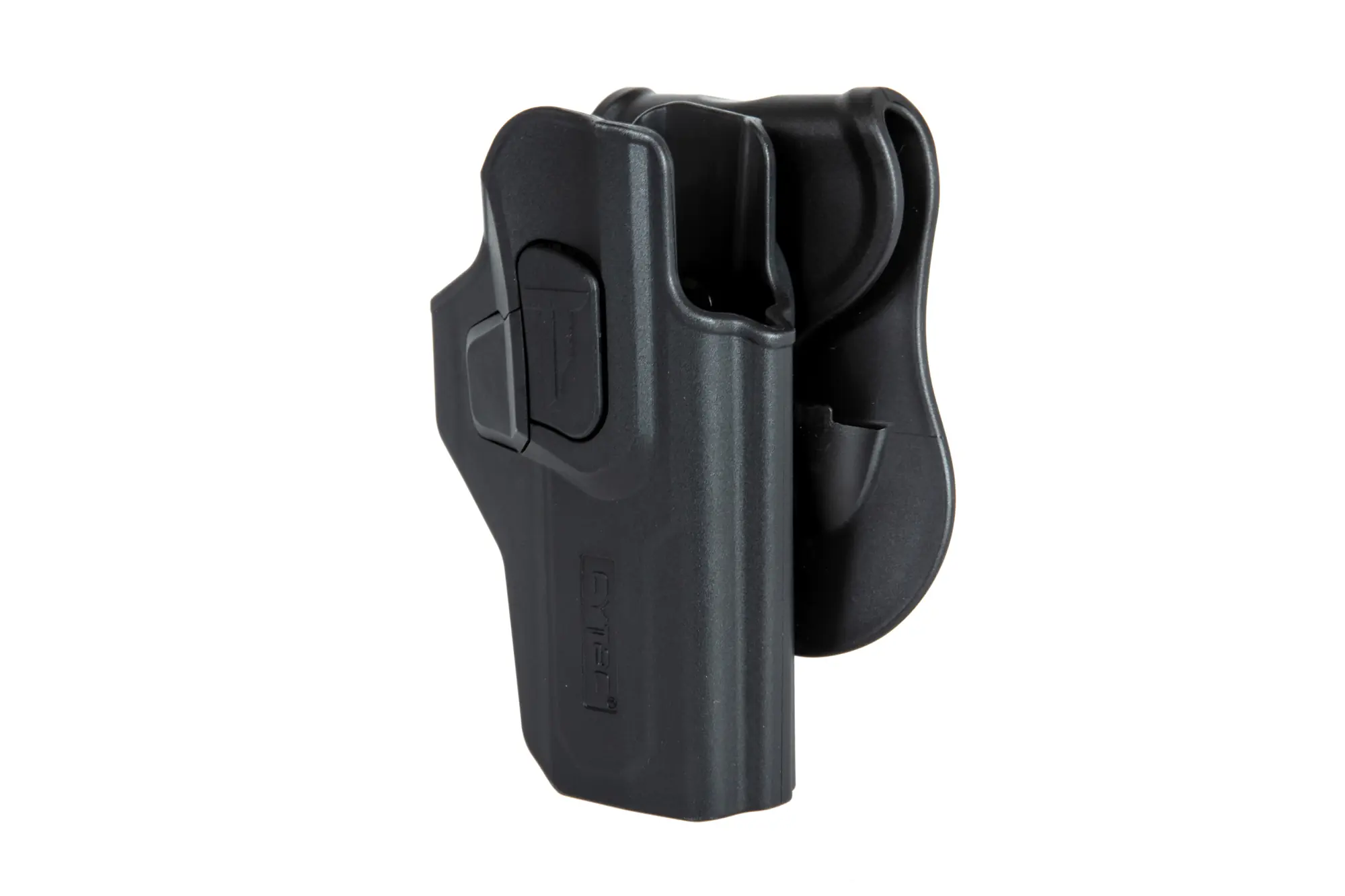 Kabura R-DEFENDER posiada intuicyjny mechanizm szybkiego zwalniania / blokowania, obsługiwany palcem wskazującym. Pistolet jest automatycznie blokowany po odłożeniu do kabury.