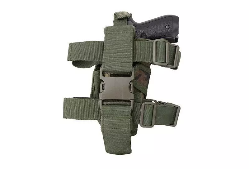 Kabura wykonana jest z nylonu. Dzięki zastosowaniu rzepów możliwe jest wyregulowanie i dostosowanie kabury do każdego typu repliki. Kabura ma zastosowanie uniwersalne. Regulowane pasy na udo zapinane są za pomocą klamer. Możliwe jest również całkowite wypięcie pasów, w zależności od potrzeb użytkownika. Pas mocujący do pasa biodrowego również posiada klamrę umożliwiającą szybkie odpięcie kabury od pasa. Na grzbiecie kabury znajduje się ładownica na magazynek.