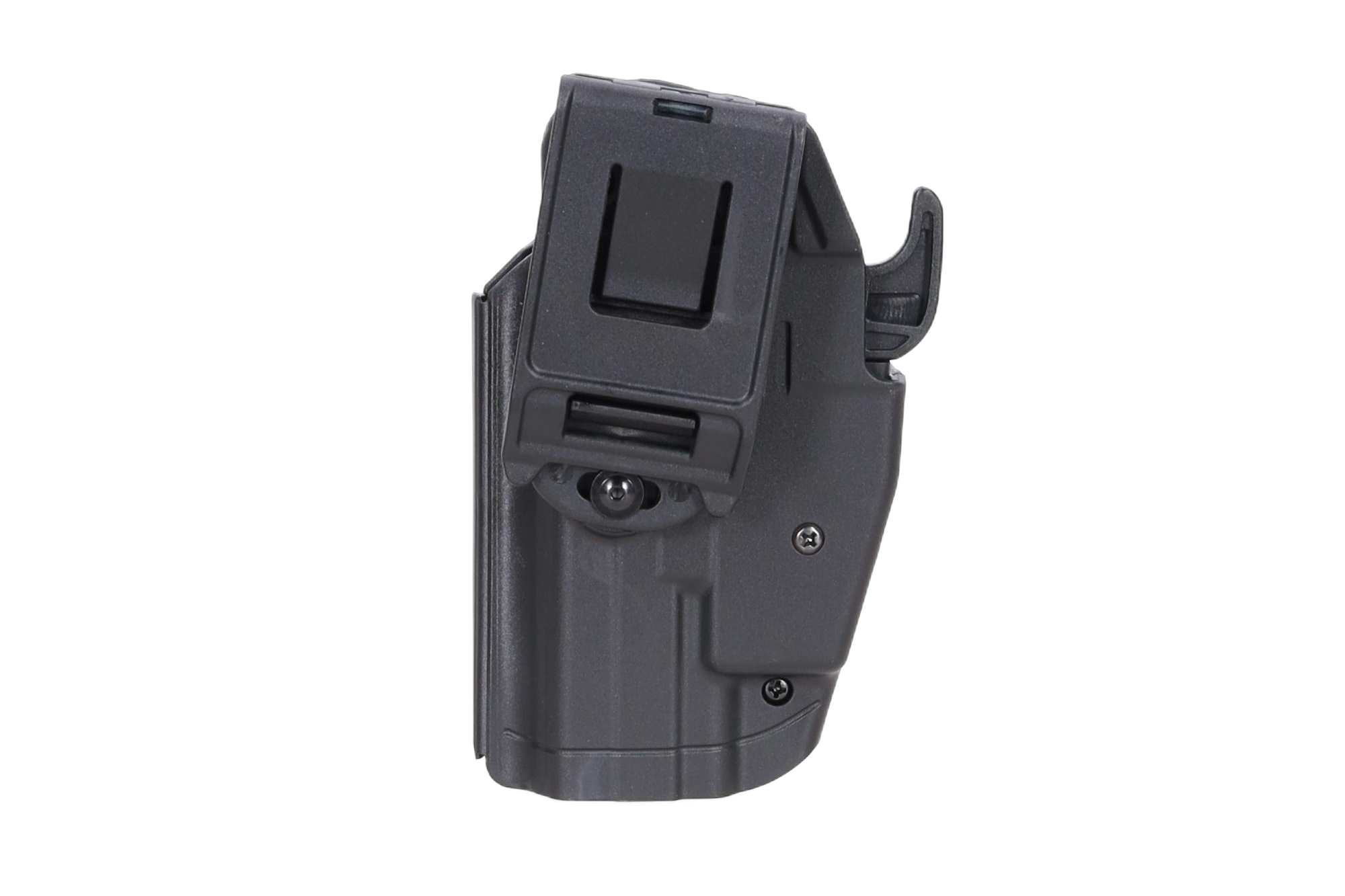 Użytkownik może łatwo dopasować kaburę do posiadanego pistoletu poprzez regulację szerokości dwoma śrubami oraz wyciąganą zaślepkę przy blokadzie.
