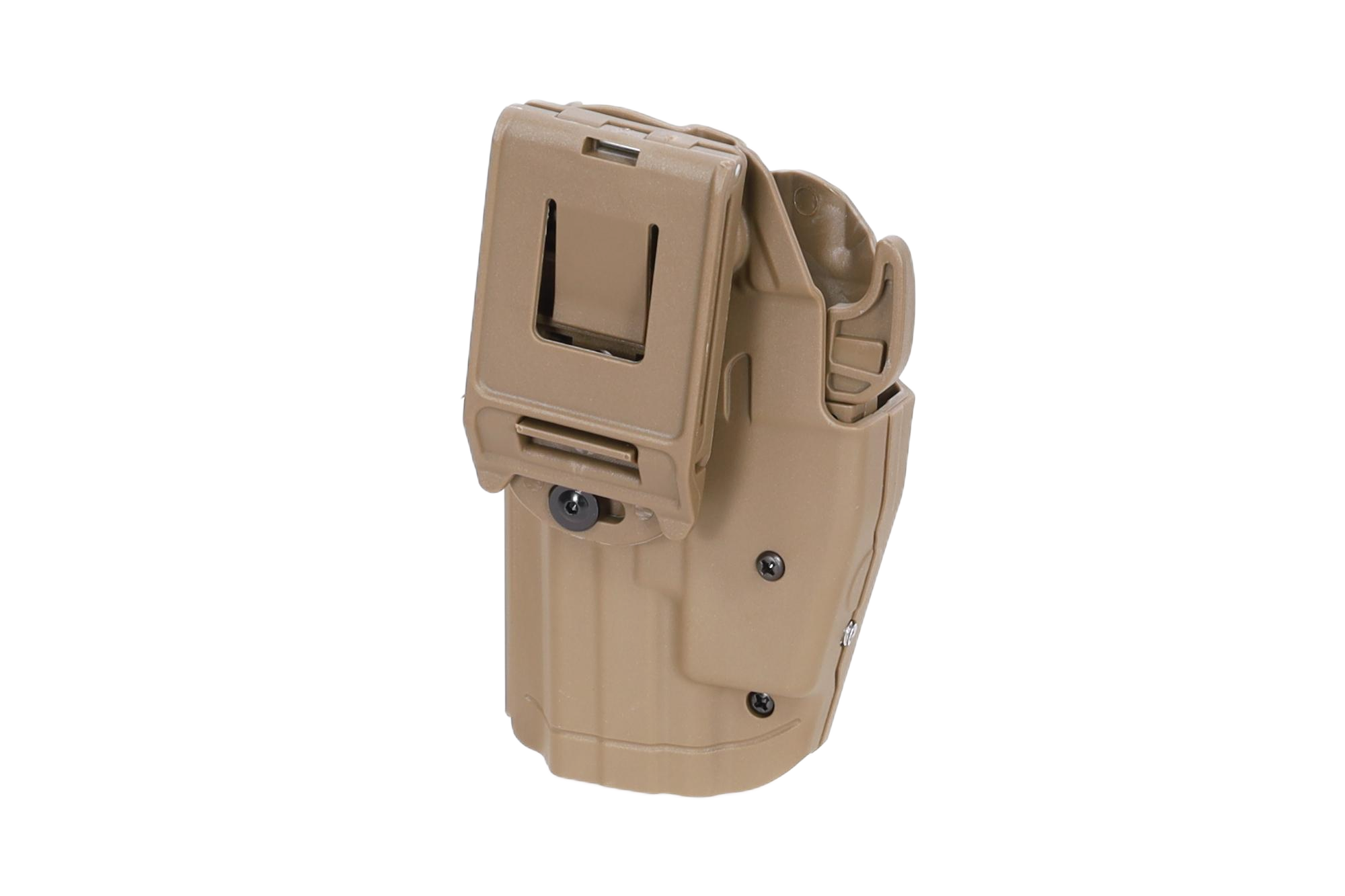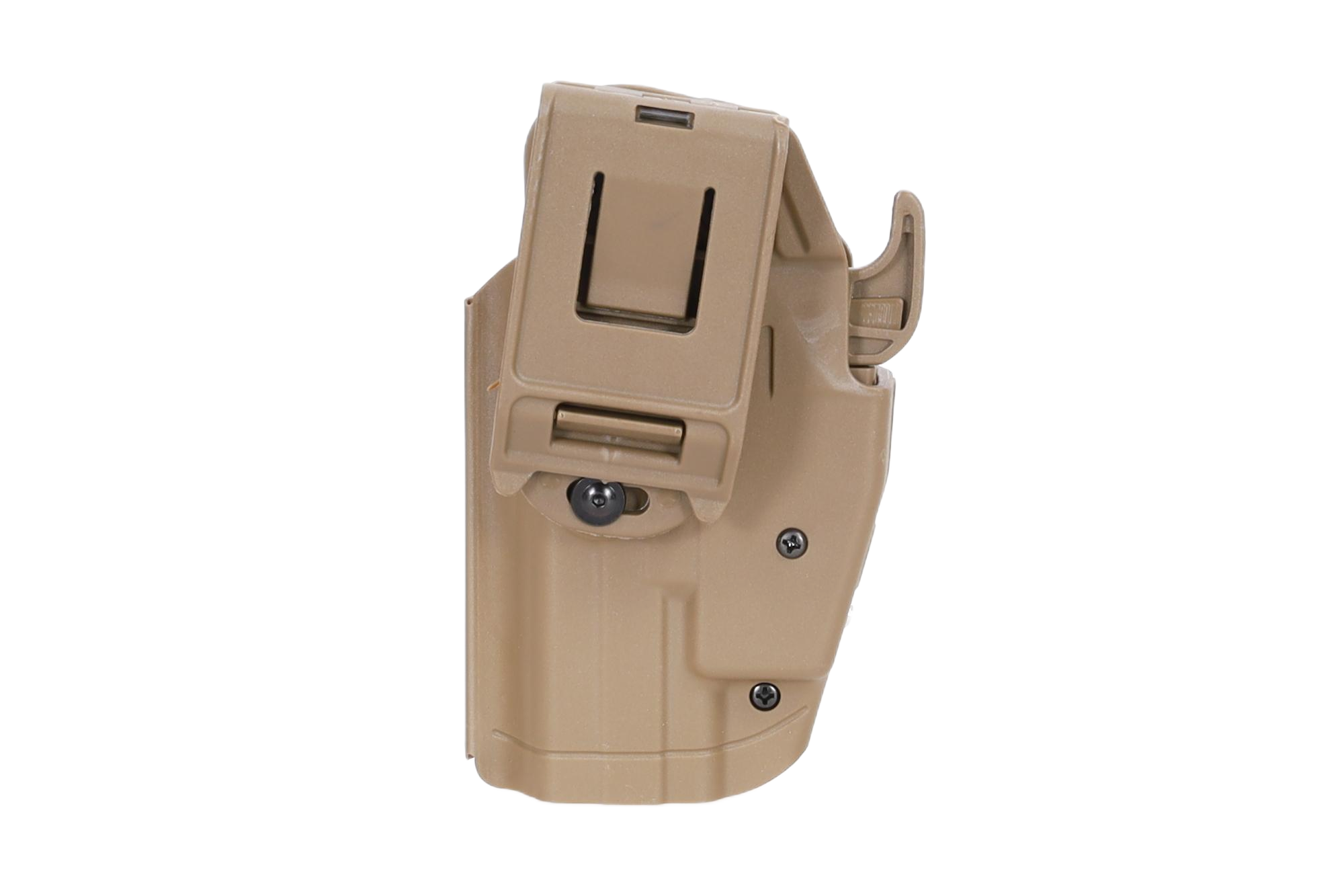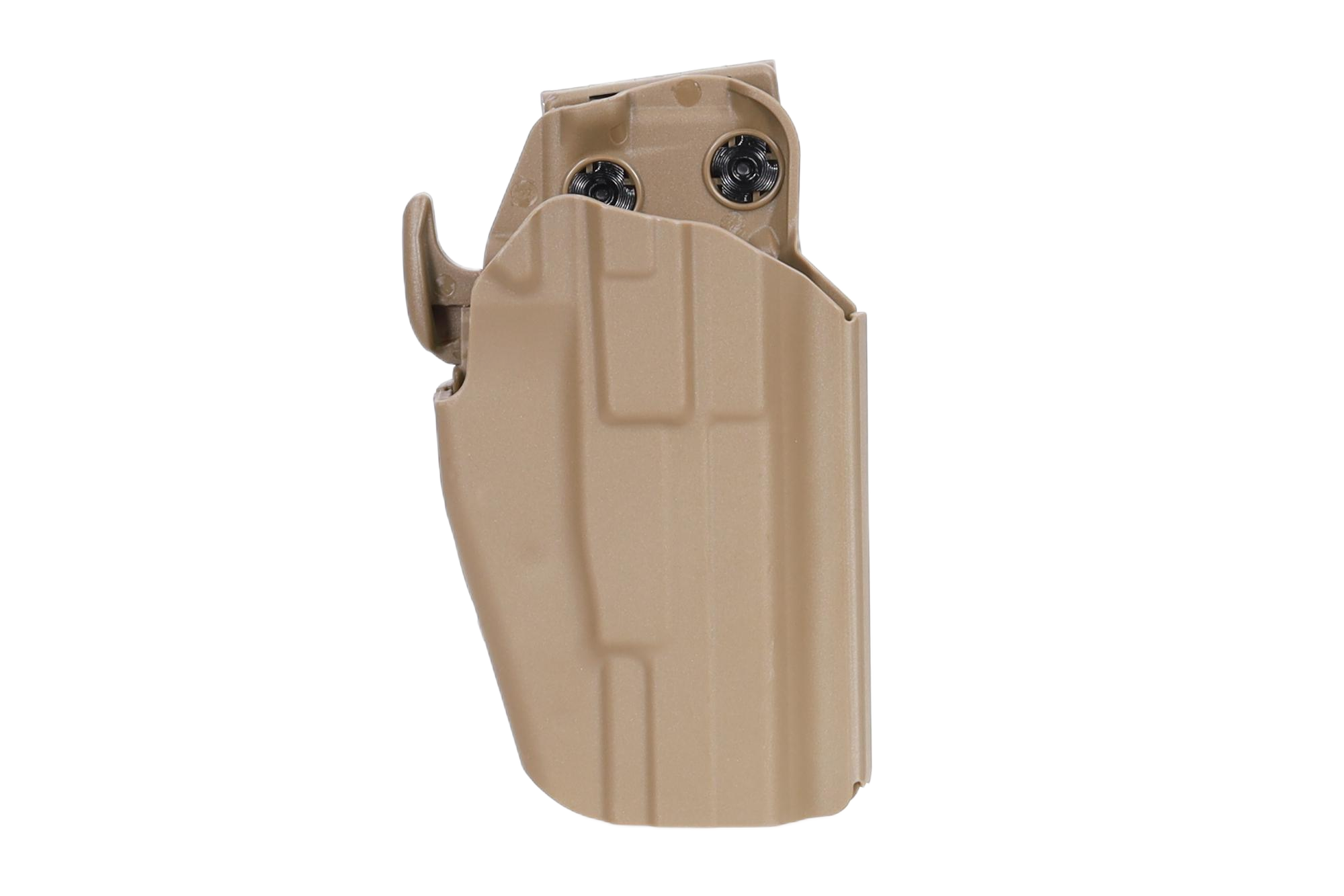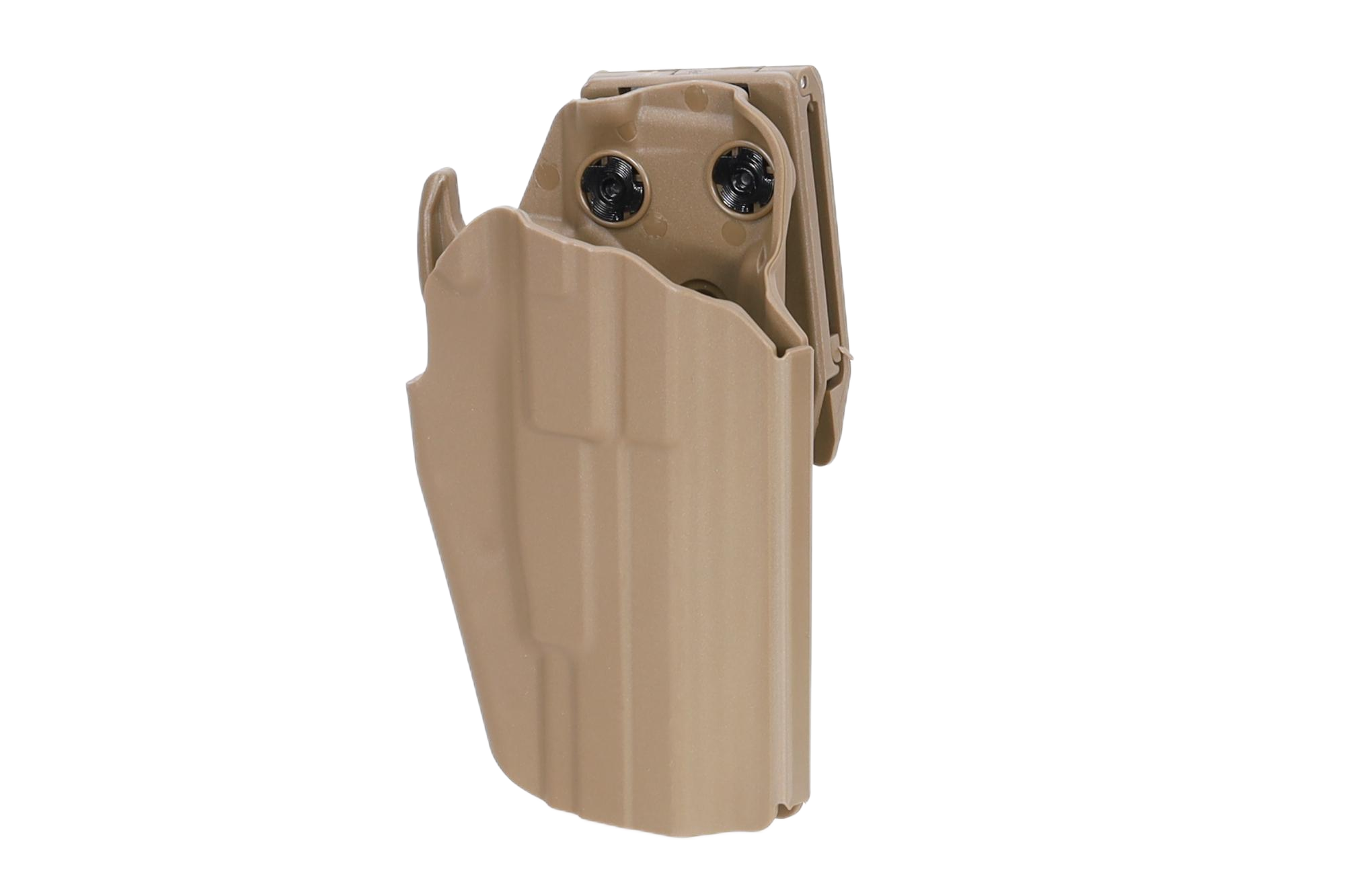 Użytkownik może łatwo dopasować kaburę do posiadanego pistoletu poprzez regulację szerokości dwoma śrubami oraz wyciąganą zaślepkę przy blokadzie.