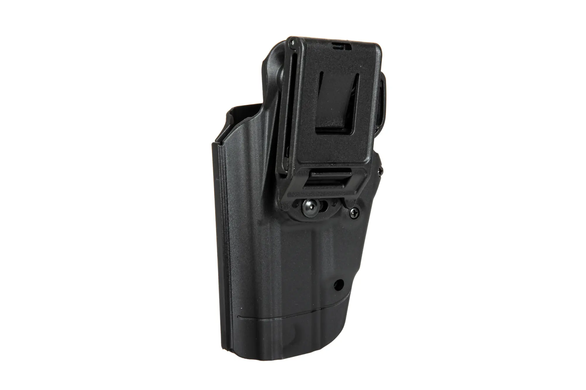 Kabura posiada montaż do pasa z zatrzaskiem o szerokości 50mm, dzięki czemu jest kompatybilny z większością pasów taktycznych dostępnych na rynku. Sam montaż przymocowano do kabury przy użyciu śrub imbusowych (dedykowany klucz imbusowy dołączono do zestawu).