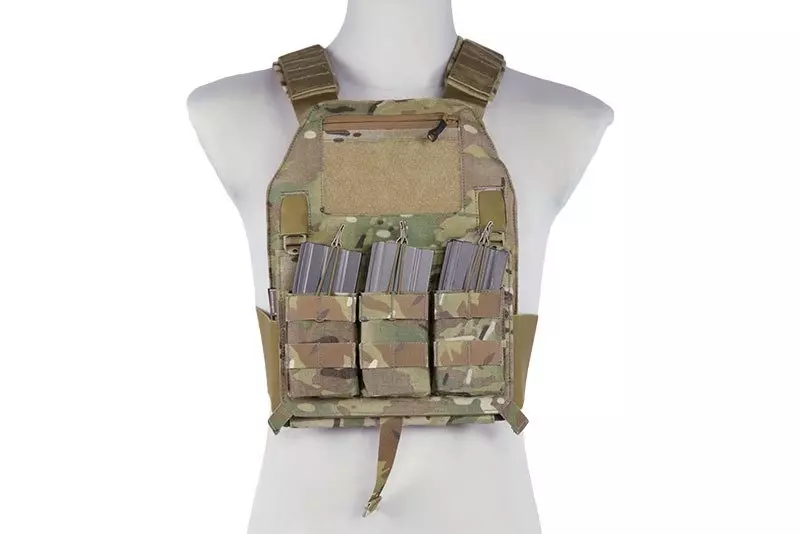 Lekka i funkcjonalna kamizelka typu plate carrier, uszyta z wytrzymałego nylonu. Zbudowana z dwóch paneli – przedniego oraz tylnego, połączonych lekkim, rozciągliwym cummerbundem.