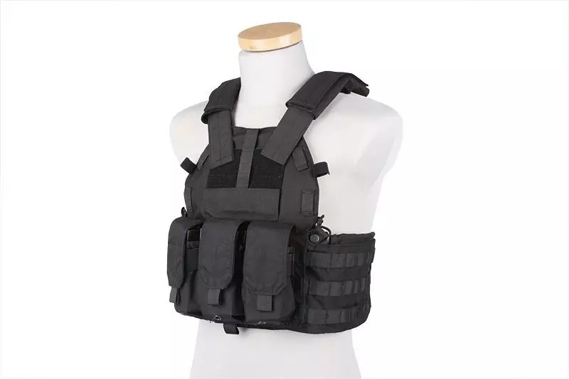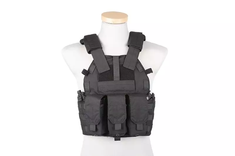 Kamizelka posiada kieszenie na wkłady balistyczne (przód, tył + boki), oraz zintegrowane (stałe) 3 ładownice na 2 x magazynek typu M4/M16 (STANAG), ich wymiary pozwalają jednak na przechowywanie magazynków typu AK. Pozostała powierzchnia kamizelki została obszyta palsami systemu montażowego MOLLE, więc możemy ją wyposażyć w dowolne kieszenie/ładownice modułowe oraz dowolnie skonfigurować. Na bocznych panelach umieszczono wewnętrzne kieszenie np. na radio, a z przodu dodatkową kieszeń płaską.