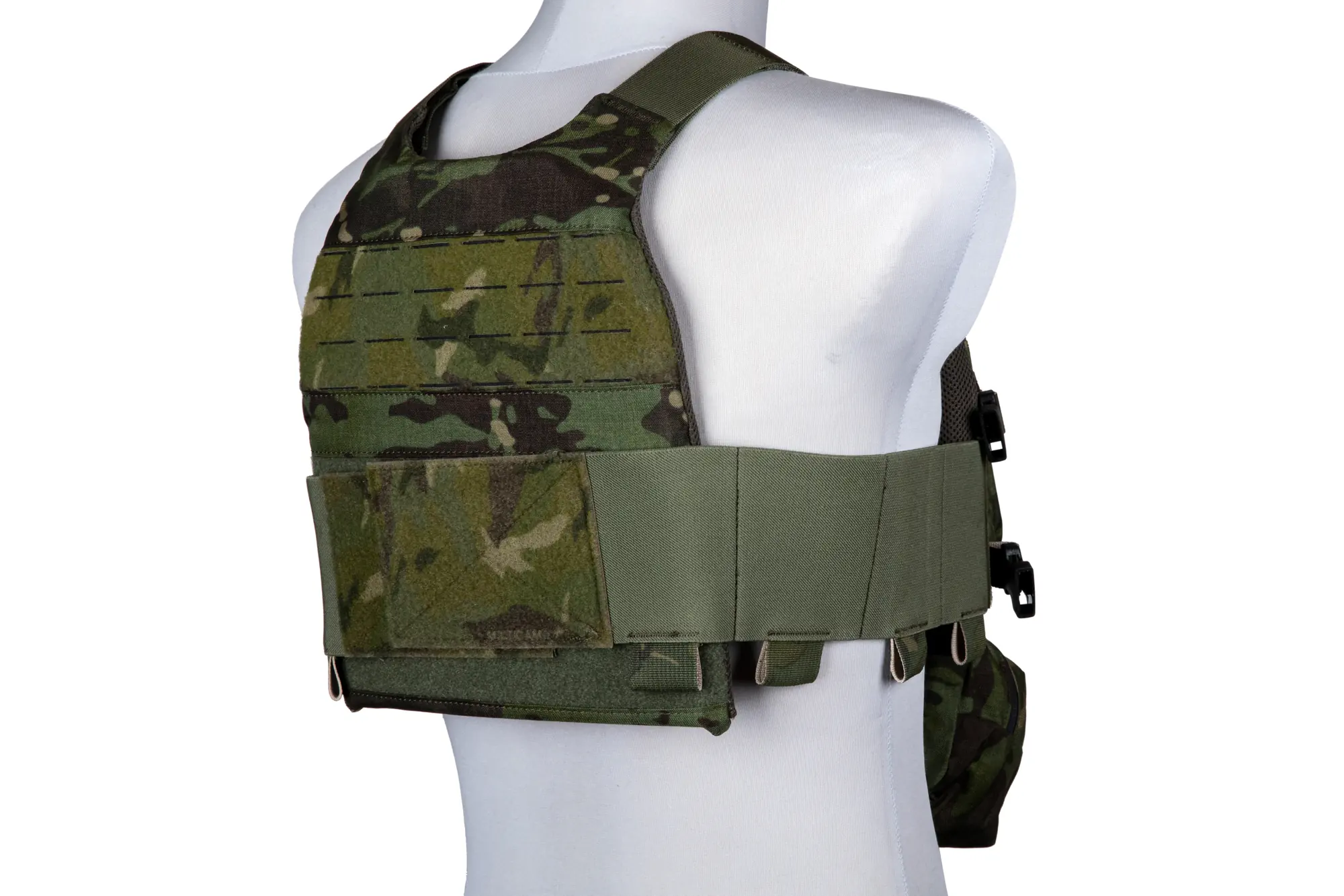– dwa panele (z przodu jaki z tyłu kamizelki) z rzepem oraz miejscem do montażu pokrowca na telefon czy panelu administracyjnego zgodnego z systemem Molle, wykonanego w technologii Laser-Cut