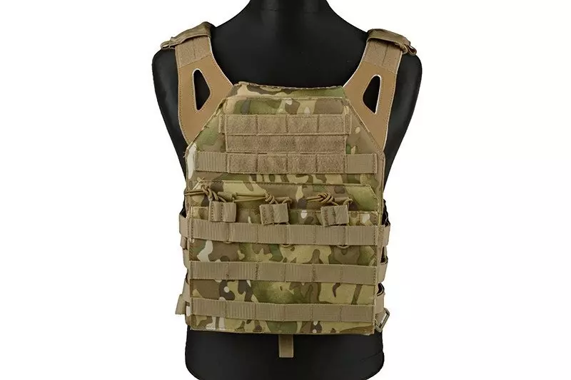 Bardzo lekka i funkcjonalna kamizelka typu plate carrier, uszyta z wytrzymałego nylonu. Zbudowana z dwóch paneli – przedniego oraz tylnego, połączonych lekkim, szkieletowym cummerbundem, który składa się jedynie z usztywnionych taśm. Nie ma problemu aby na tych taśmach zamocować dodatkowe kieszenie modułowe.