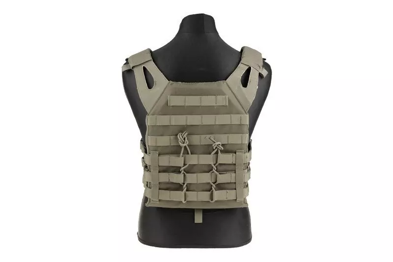 Bardzo lekka i funkcjonalna kamizelka typu plate carrier, uszyta z wytrzymałego nylonu. Zbudowana z dwóch paneli – przedniego oraz tylnego, połączonych lekkim, szkieletowym cummerbundem, który składa się jedynie z usztywnionych taśm. Nie ma problemu aby na tych taśmach zamocować dodatkowe kieszenie modułowe.