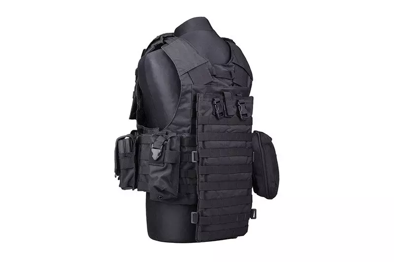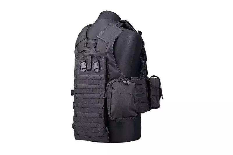 Na panelu tylnym znajduje się pokrowiec sytemu hydratacyjnego, doczepiany w systemie MOLLE. Kamizelka posiada miejsce na płyty balistyczne, jest także w całości regulowana w pionie i poziomie.
