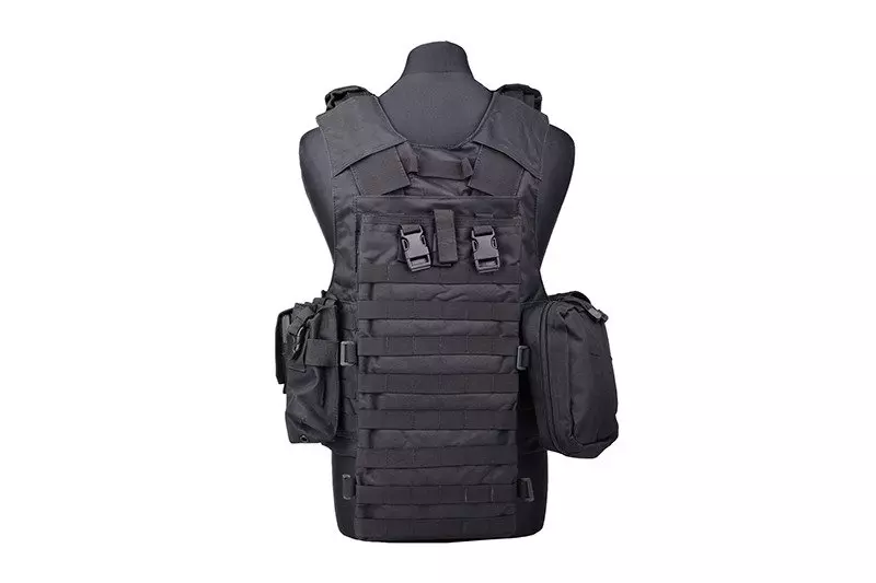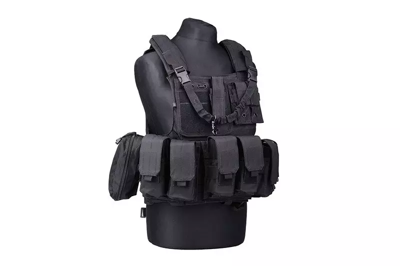 Na wysokości klatki piersiowej znajdują się dwie ładownice pistoletowe oraz panel administracyjny pokryty rzepem (miękka strona). Dodatkowo, zamontowano tu również jednopunktowe zawieszenie przeznaczone do przenoszenia repliki broni długiej.
