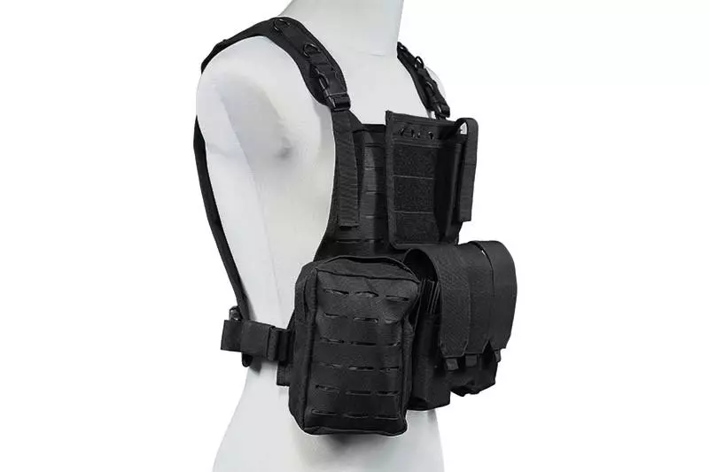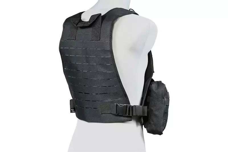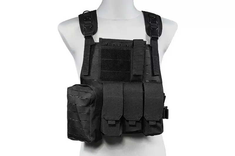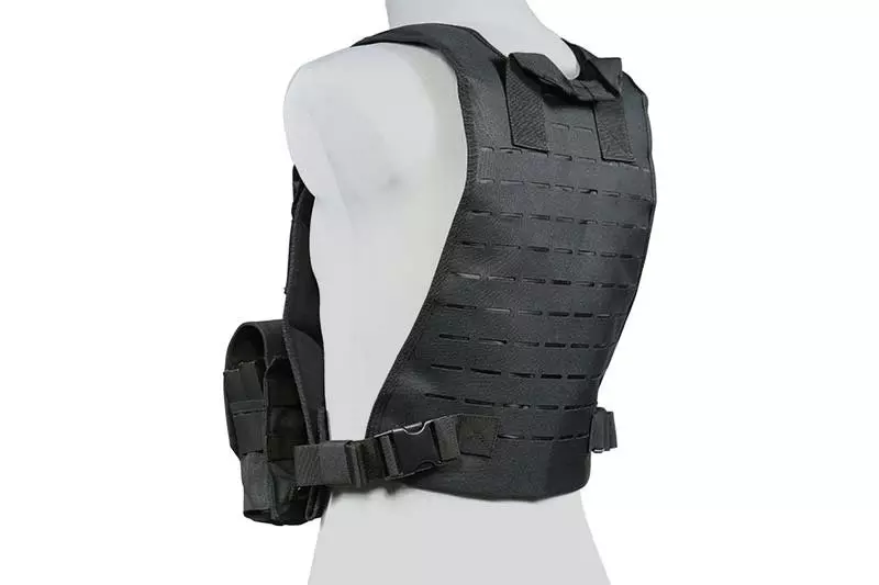 Wykonana z wytrzymałego nylonu kamizelka typu MSBS Plate Carrier. Zaopatrzona wycięte w technologii laser cut PALSy na przednim i tylnym panelu. Dzięki temu, możliwe jest przyłączenie do niej dodatkowych ładownic oraz wyposażenia zgodnego z systemem MOLLE. Co więcej, oporządzenie dodatkowe przyłączone może być w dowolny, wygodny dla użytkownika sposób.