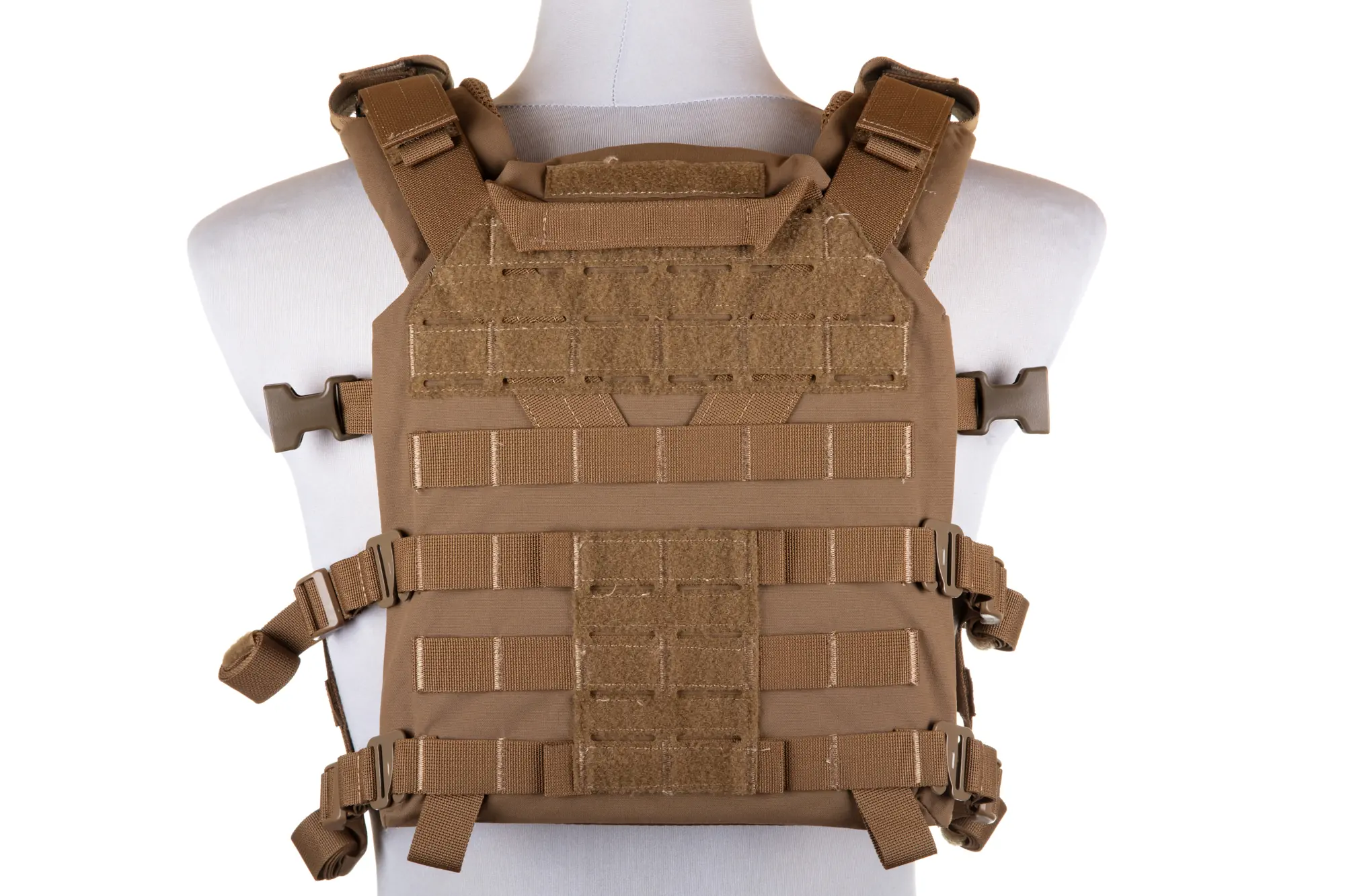 Kamizelka została uszyta z wysokiej jakości Cordury i wyposażona w wysokiej jakości klamry typu QD oraz zamek YKK. Plate carrier składa się z przedniego i tylnego panelu, które są przystosowane do stabilnego przenoszenia twardych wkładów balistycznych SAPI/ESAPI w rozmiarach S, M lub L. Płyty balistyczne wsuwane są do kieszeni od spodu i dodatkowo zabezpieczone na rzep.