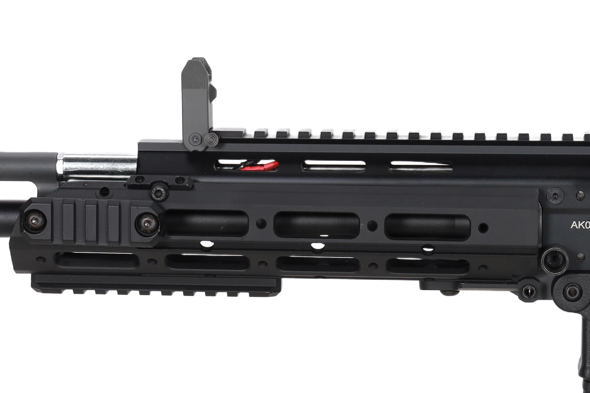 Karabinek posiada metalowe łoże o długości 9.5 cala. Na łożu będziemy mogli zamontować dodatkowe akcesoria takie jak: latarka, laser, chwyt pionowy, ale również optykę – karabinek na prawie całej swojej długości ma szynę grzbietową. Na Upperze znajdziemy rączkę przeładowania – co ważne – rączka po odciągnięciu do tyłu odsłania atrapę suwadła, dając użytkownikowi dostęp do dwuczęściowej komory hop-up, którą będzie można wyregulować.