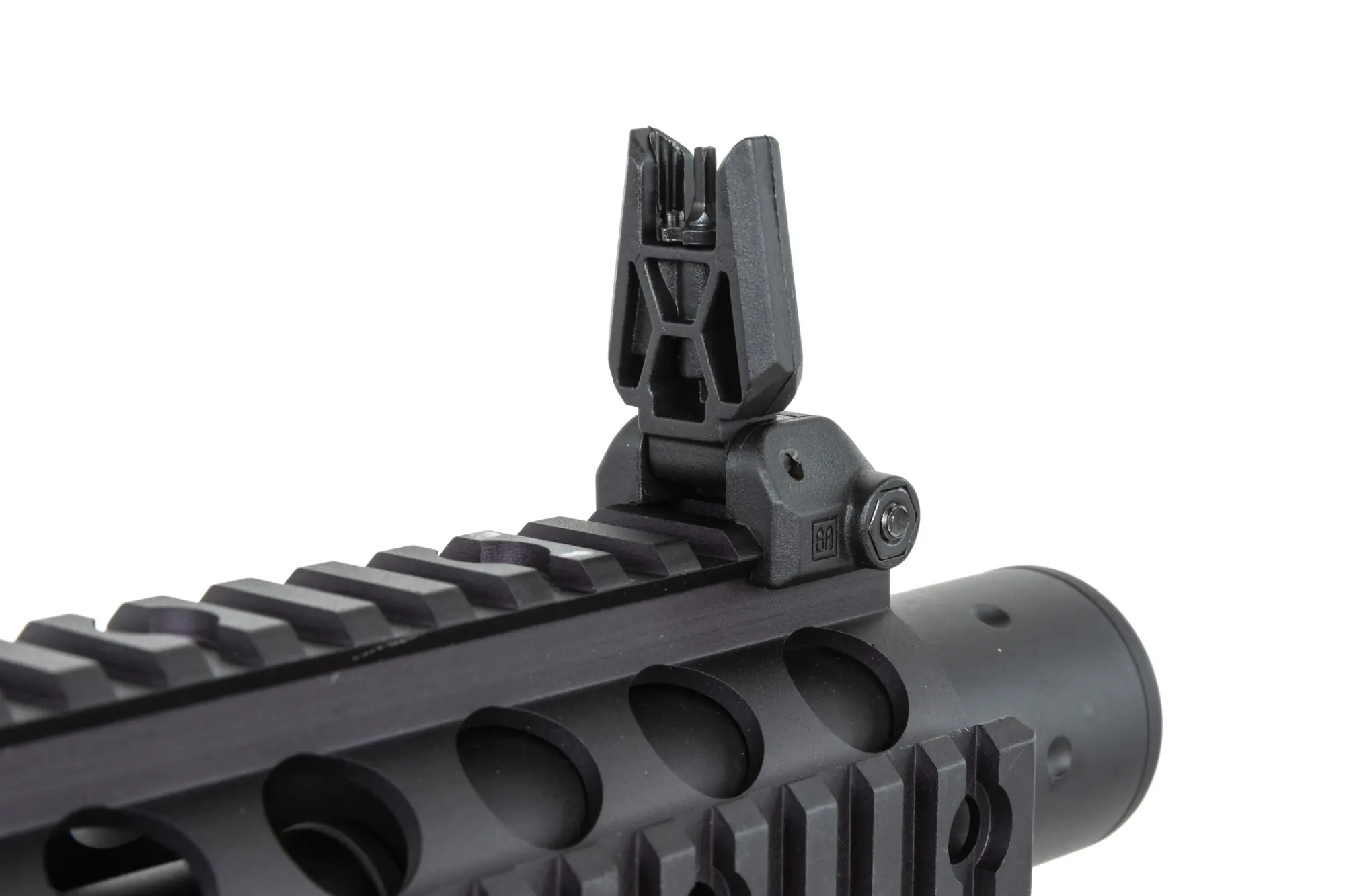 Replika karabinka SA-E05 wyposażona jest we front w standardzie RIS 22mm pozwalający na montaż różnej maści akcesoriów – chwytów, latarek, wskaźników laserowych czy celowników optycznych. Lufa repliki zakończona jest urządzeniem wylotowym osadzonym na gwincie 14mm CCW. Na grzbietowej szynie RIS umieszczono składane przyrządy celownicze.