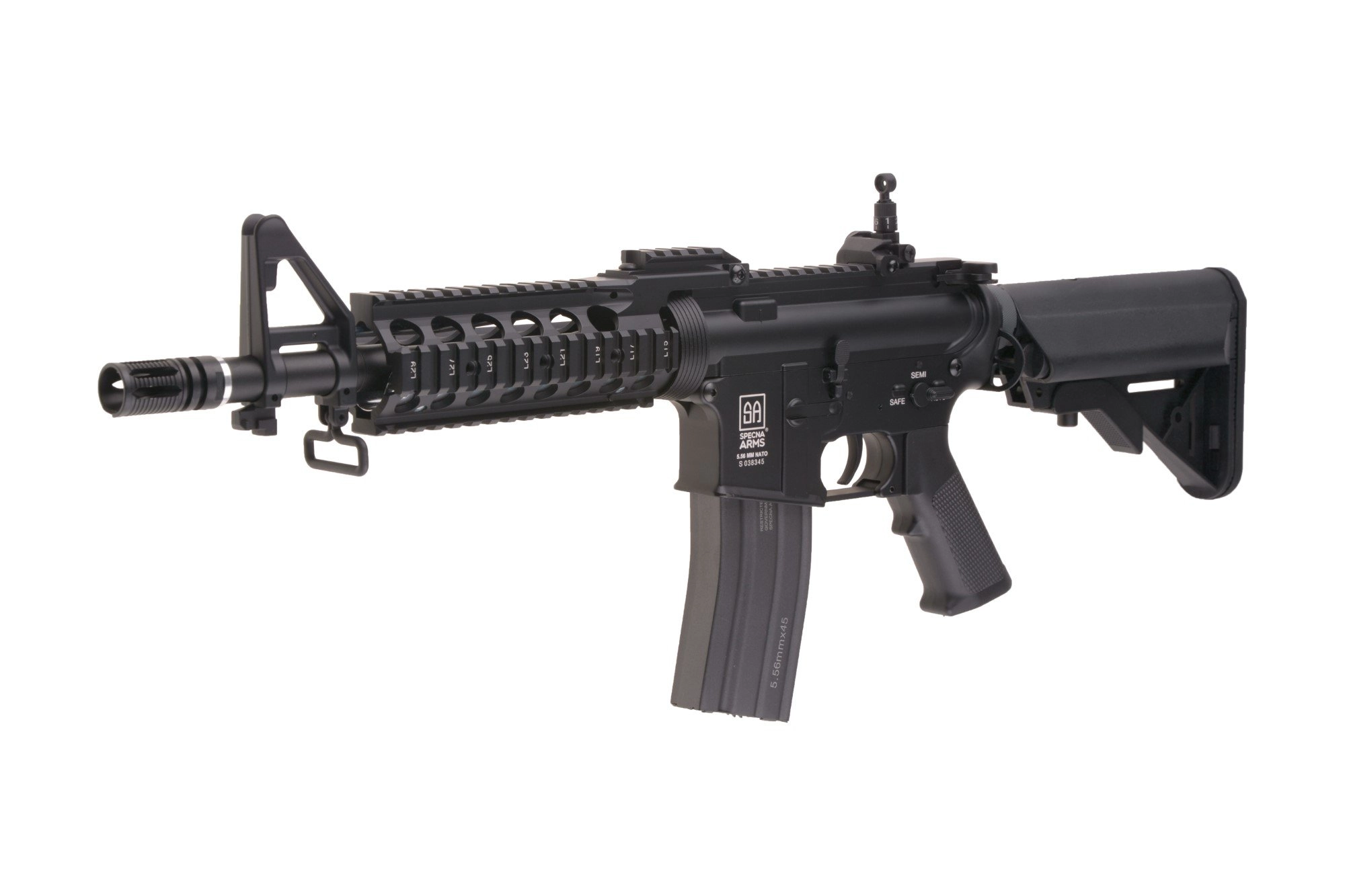 Replika karabinka SA-B05 marki Specna Arms wykonana została w przeważającej części z jednolitego stopu cynku i aluminium, z zastosowaniem elementów stalowych w najbardziej newralgicznych punktach repliki (stalowe są wiec wszystkie śruby, piny oraz uchwyt zawieszenia taktycznego). Mieszczącą akumulator kolbę typu SF jak i chwyt pistoletowy wytworzono z polimerowego tworzywa sztucznego. Korpus repliki oraz zespół szyn RIS poddane zostały procesowi anodyzacji, co gwarantuje wysoki stopień ochrony repliki przed korozją. Samo malowanie repliki wykonane zostało procesem proszkowania, po uprzednim poddaniu powierzchni piaskowaniu. Zapewnia to znacznie wyższą niż zazwyczaj odporność naniesionej farby na ścieranie. Na korpusie naniesione zostały oznaczenia USMC.