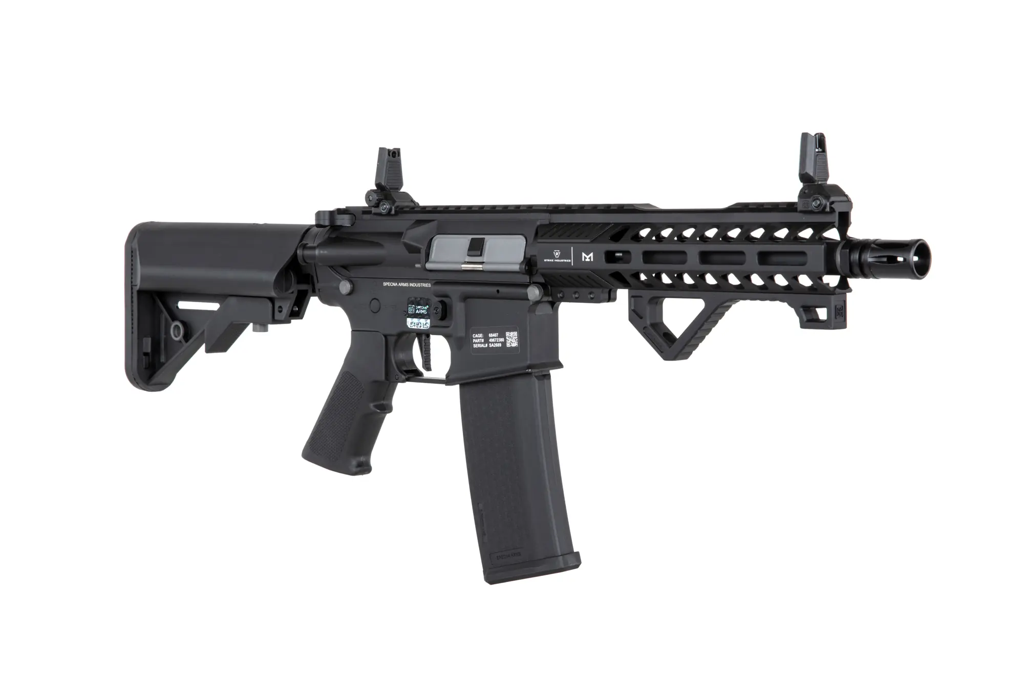 Replika wyposażona została w frontową szynę M-LOK, wyprodukowaną na licencji Strike Industries. Do repliki dołączony został również najnowszy chwyt kątowy M-Lok zaprojektowany przez Specna Arms. Na górnej szynie RIS została założony składany przeziernik, który nie koliduje z optoelektronicznymi urządzeniami celowniczymi. Dzięki rozsuwanej kolbie zakończonej stopką o antypoślizgowej fakturze, możliwe jest dostosowanie długości repliki do budowy oraz preferencji strzelca. Standardowy tłumik płomienia osadzony został na 14-milimetrowym lewoskrętnym gwincie, co umożliwia przyłączenie w jego miejsce tłumika dźwięku.