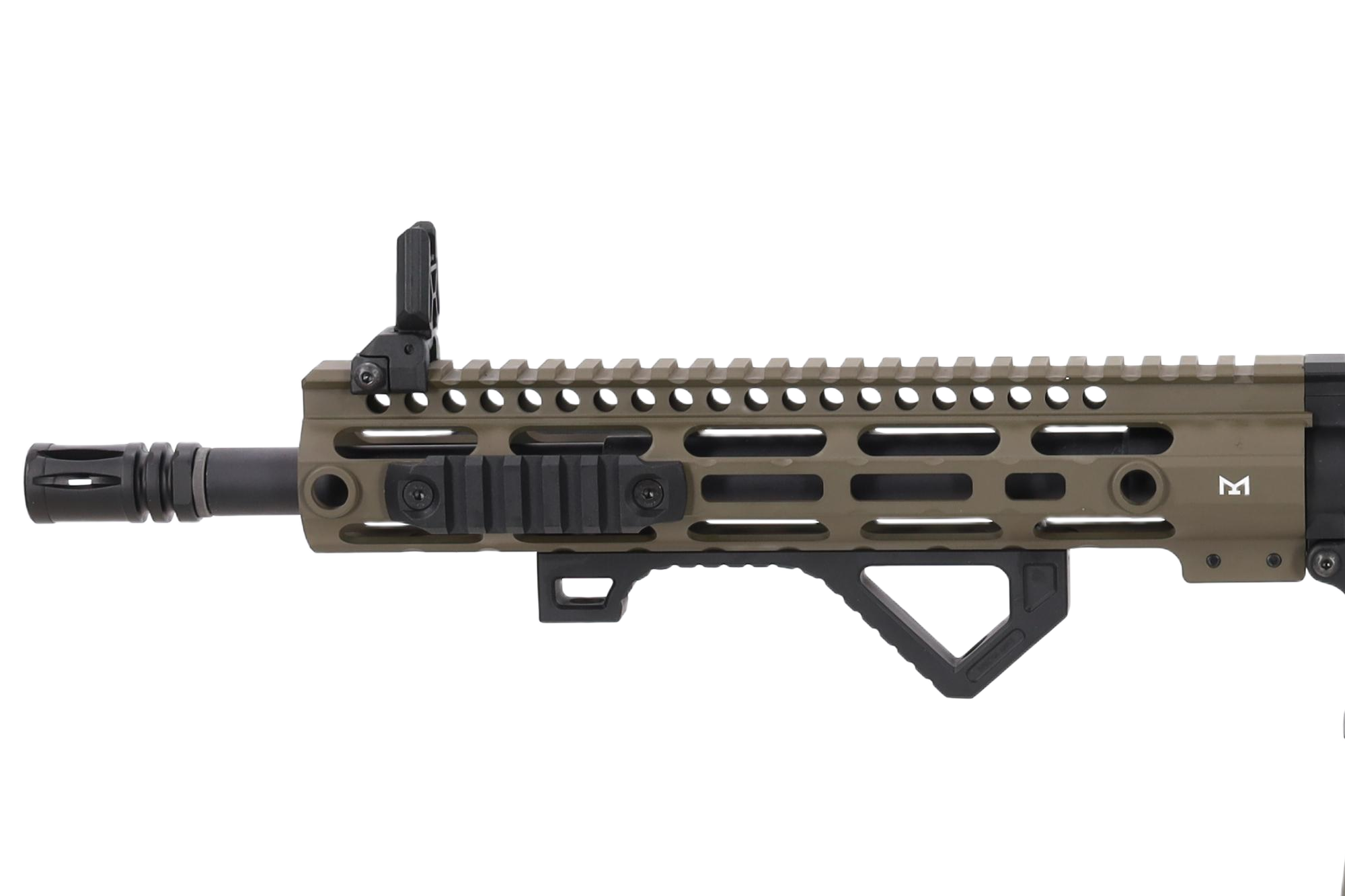 Replika wyposażona jest we front w systemie montażowym M-LOK na którym montować można różnej maści akcesoria taktyczne: latarki, chwyty, wskaźniki laserowe czy celowniki optyczne. Na grzbiecie repliki umieszczono także składane przyrządy celownicze oraz szynę RIS.