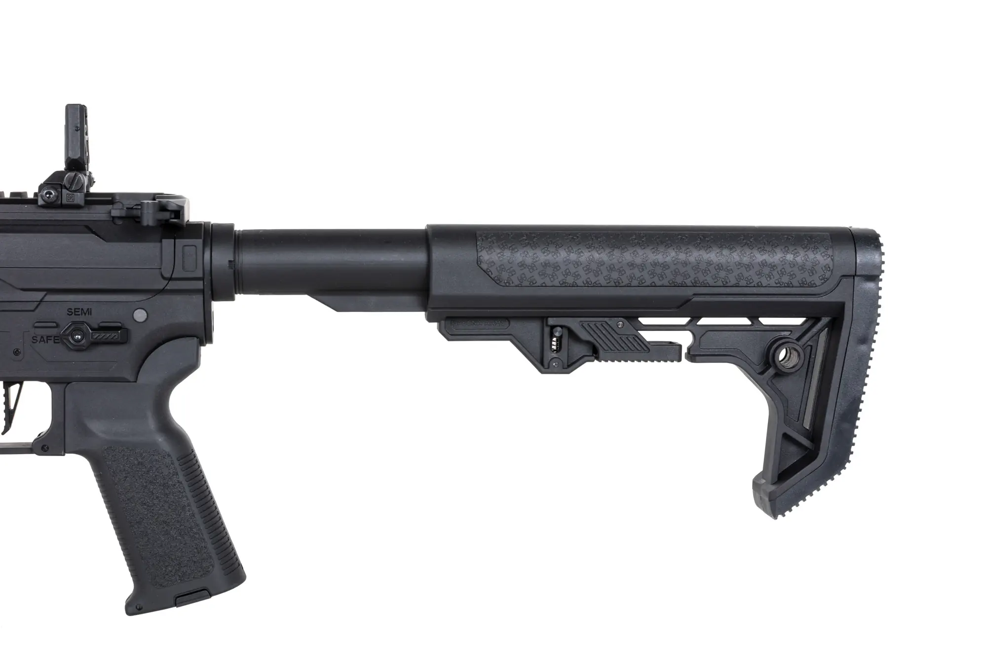 Korpus to autorski projekt Specna Arms łączący w sobie walory estetyczne oraz wysoką ergonomię. Każdy element został wykonany oraz spasowany z dbałością o szczegóły. Model posiada obustronne powiększone manipulatory (selektor oraz zwalniacz magazynka) oraz funkcjonalny bolt-catch.