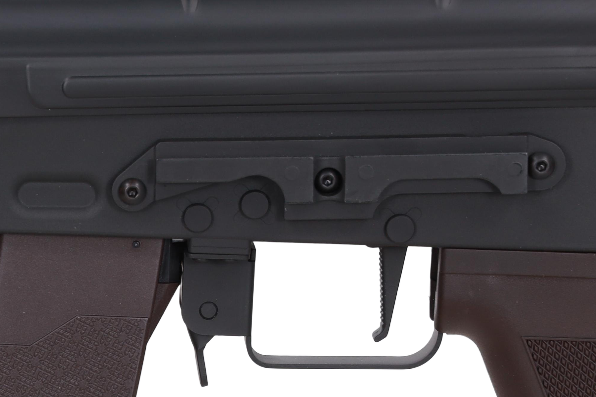 Do repliki pasuje bezproblemowo większość typów magazynków produkcji Cyma, JG, E&L, Bolt, dopasowanie magazynków pozostałych marek może wymagać drobnych modyfikacji.