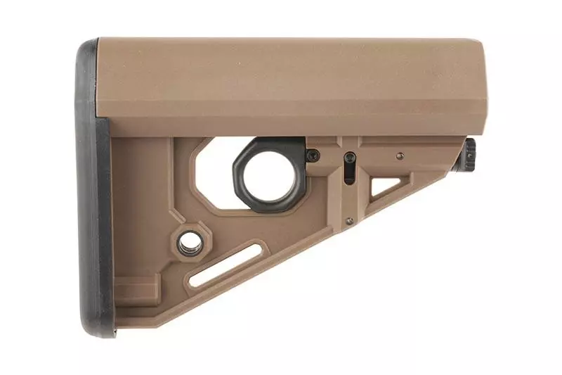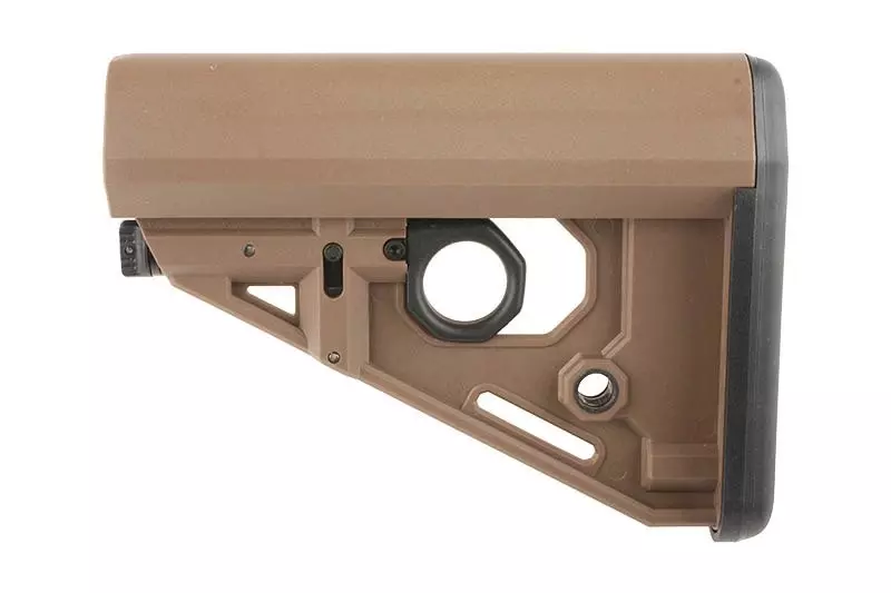 Wykonana z wytrzymałego tworzywa, uniwersalna, wielopozycyjna kolba do replik typu M4. Kolba zaopatrzona jest w gniazdo zawieszenia taktycznego QD. Brak prowadnicy w zestawie.