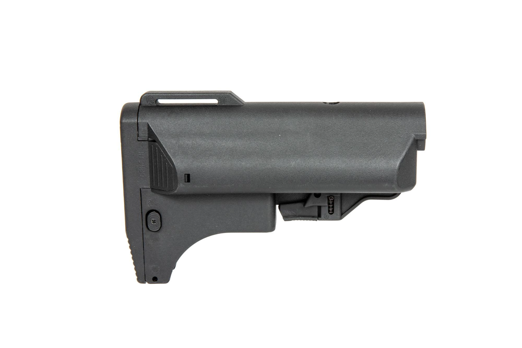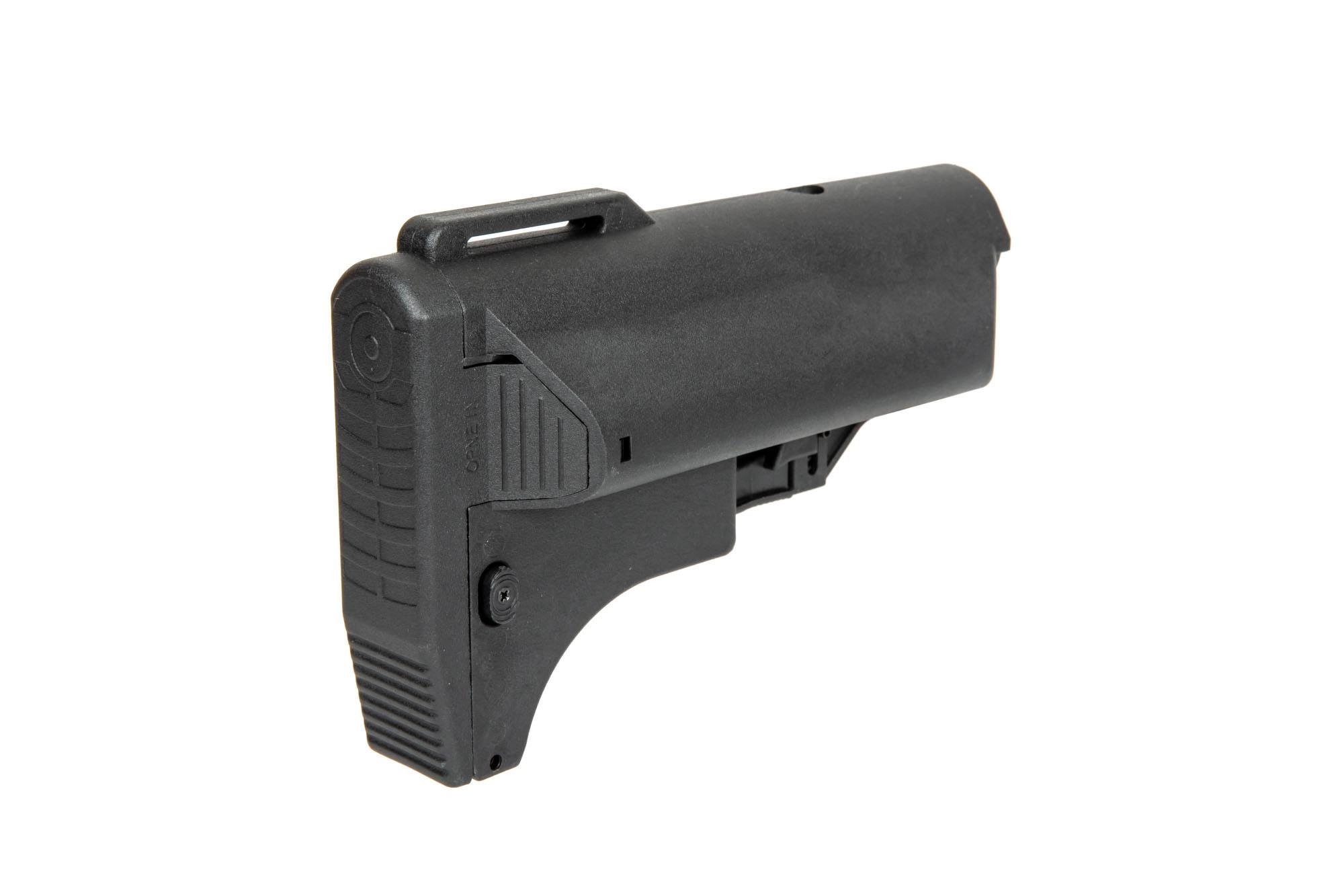 Wykonana z mocnego tworzywa sztucznego regulowana kolba pasująca na prowadnice występujące w replikach typu M4/M16. Dzięki zdejmowanej stopce w środku zmieści się bateria do repliki. W dolnej części kolby znajduje się miejsce na dodatkowy magazynek do replik typu M4/M16.