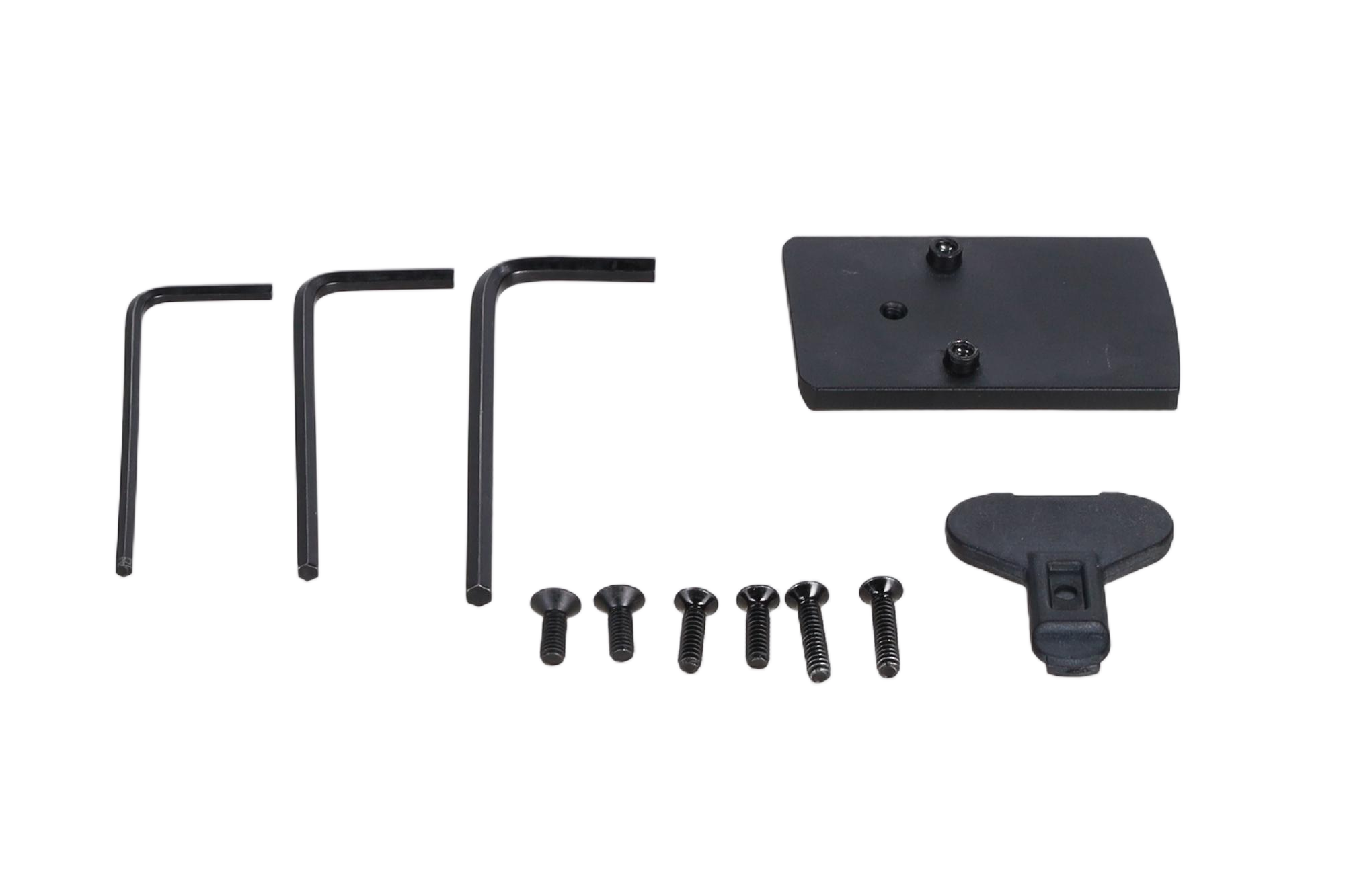 W zestawie znajdziemy płytkę montażową, która umożliwia mocowanie na pistoletach serii G (standard TM) oraz montaż na szyny RIS 22mm.