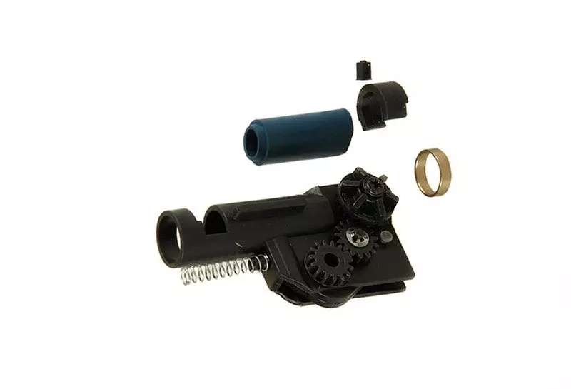 Wykonana z tworzywa sztucznego komora hop-up przeznaczona do replik typu M4/M16. Najwyższa jakość wykonania gwarantuje podwyższoną szczelność układu. Do zestawu dołączono gumkę hop-up wraz z dystanserem.