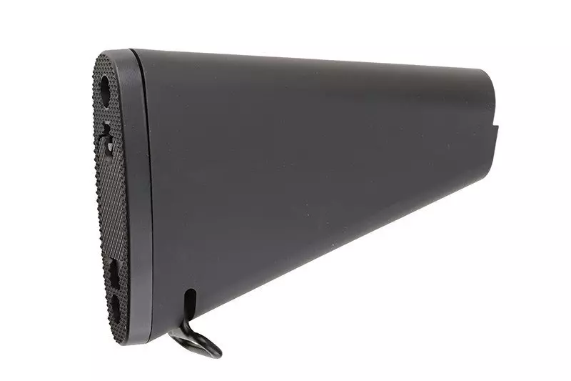 Wykonana z wytrzymałego tworzywa i metalu stała kolba do replik typu M4/M16. Kolba została z zewnątrz pokryta warstwą gumy dzięki czemu zyskuje wygoda użytkowania. Idealne rozwiązanie kiedy potrzebujemy krótkiej kolby z dużą ilością miejsca na akumulator.