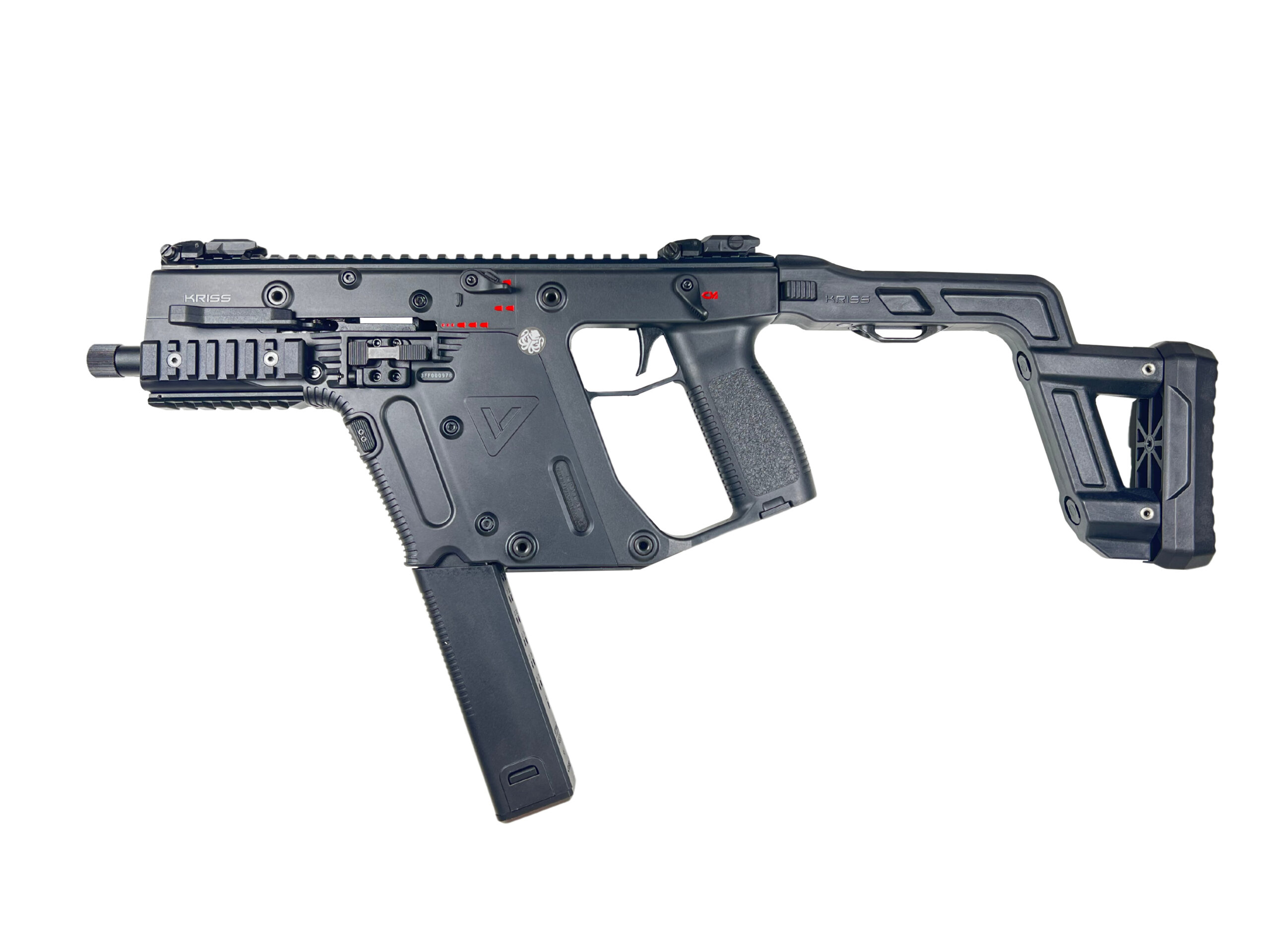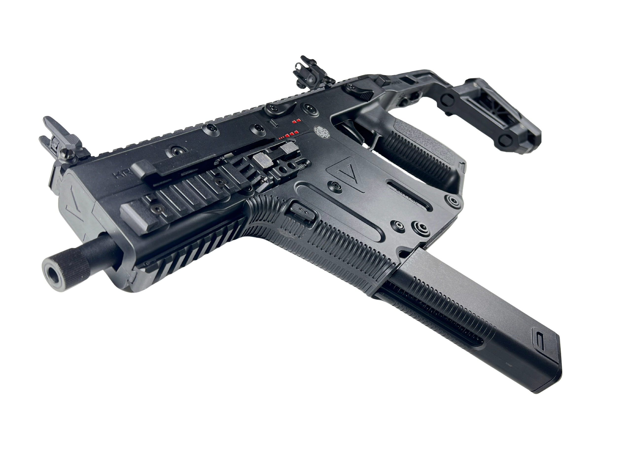 The airsoft version of the Kriss Vector by Krytac brings a faithful replica of this legendary firearm into the world of airsoft. With the official Kriss Vector license from Krytac, every detail is carefully reproduced to provide the most realistic shooting experience. And why wouldn’t it be, after all, this weapon was developed to perfection over 10 years before achieving absolute quality, to be released into the world as a new level of GBB submachine guns.