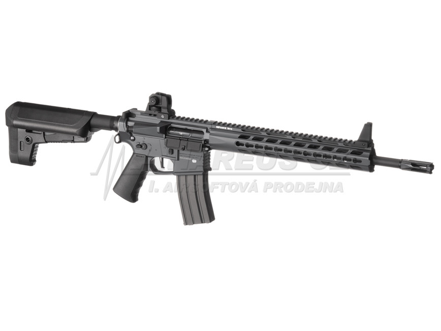 Hop-Up: Adjustable Shooting Mode: Semi and full automatic Magazine capacity: 300 rds Length: 945 mm Length (folded): 863 mm Inner barrel length: 416 mm Thread: 14mm CCW Motor: Long Connection: Mini Tamiya Caliber: 6mm MOSFET: Yes Gearboxversion: 2 Custom Weight: 3.0 kg